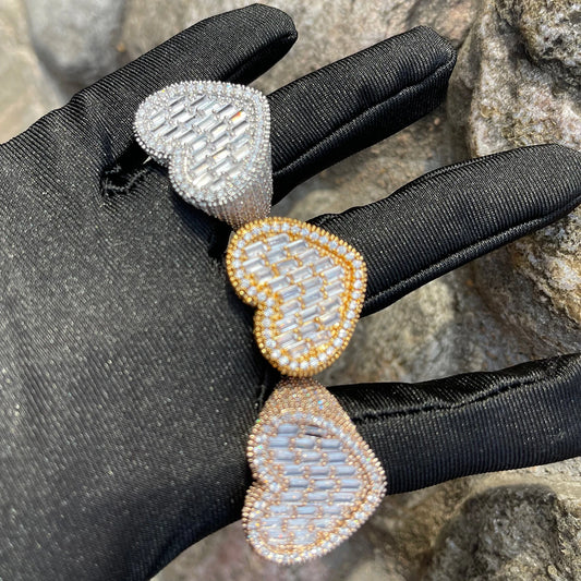 Bubble Letter Baguette Heart Ring for Women Ice Out Finger Charms Real Gold Plated Hip Hop Jewelry