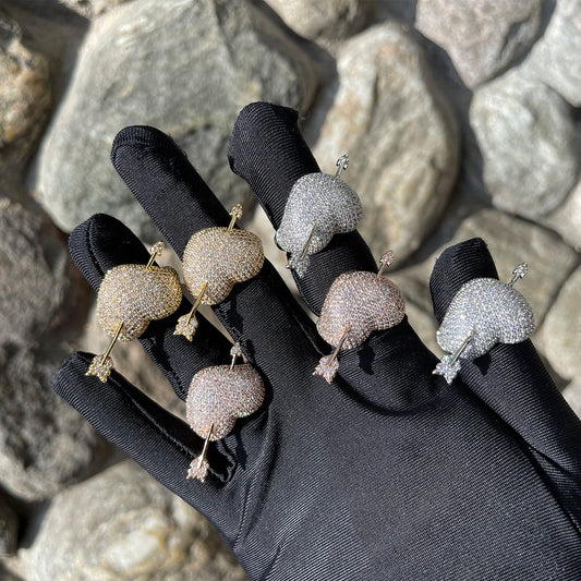 Bubble Letter Couples Ring for Men Arrow Heart Real Gold Plated Hip Hop Jewelry Valentines Day Gift 2021 Trend