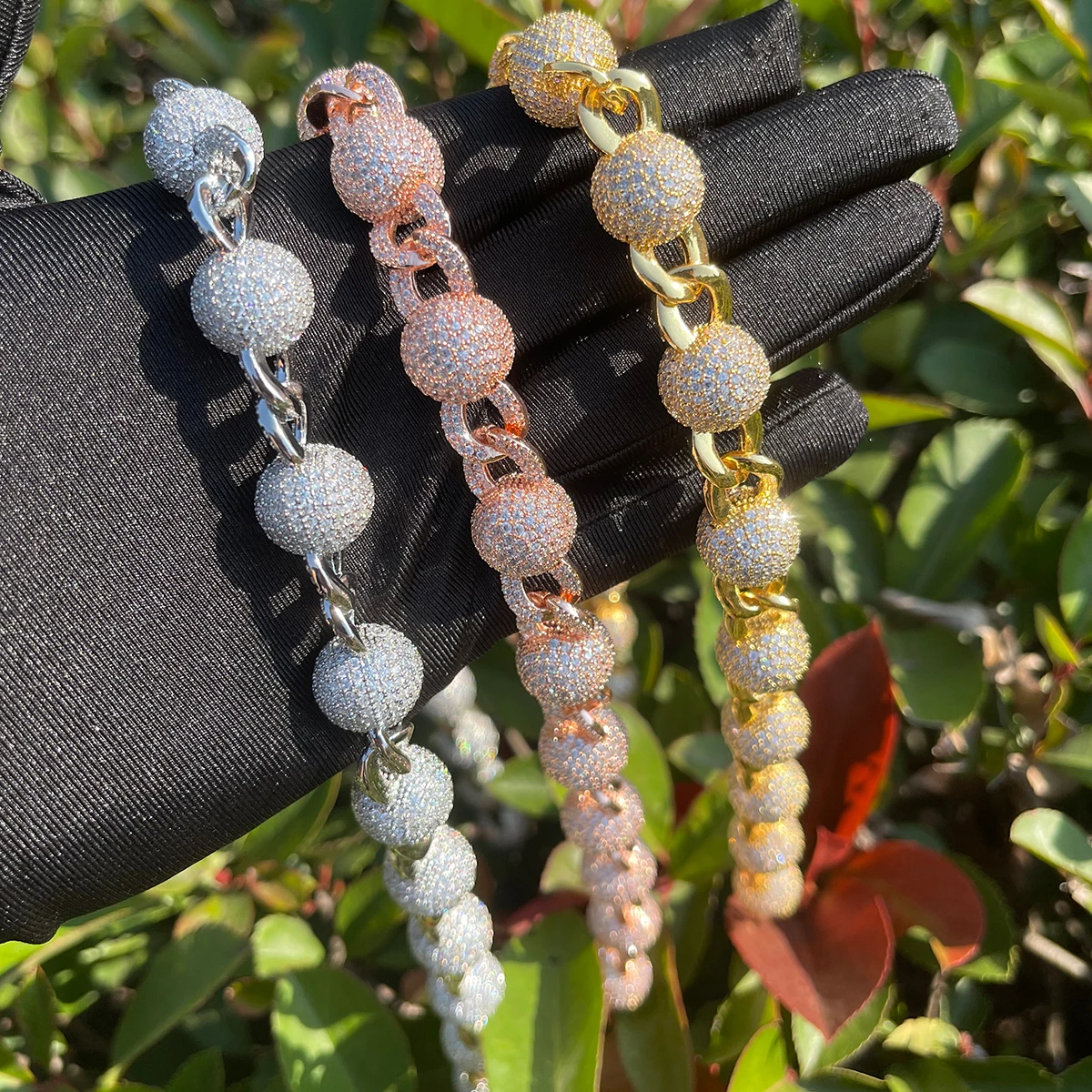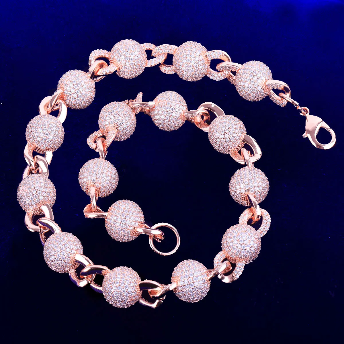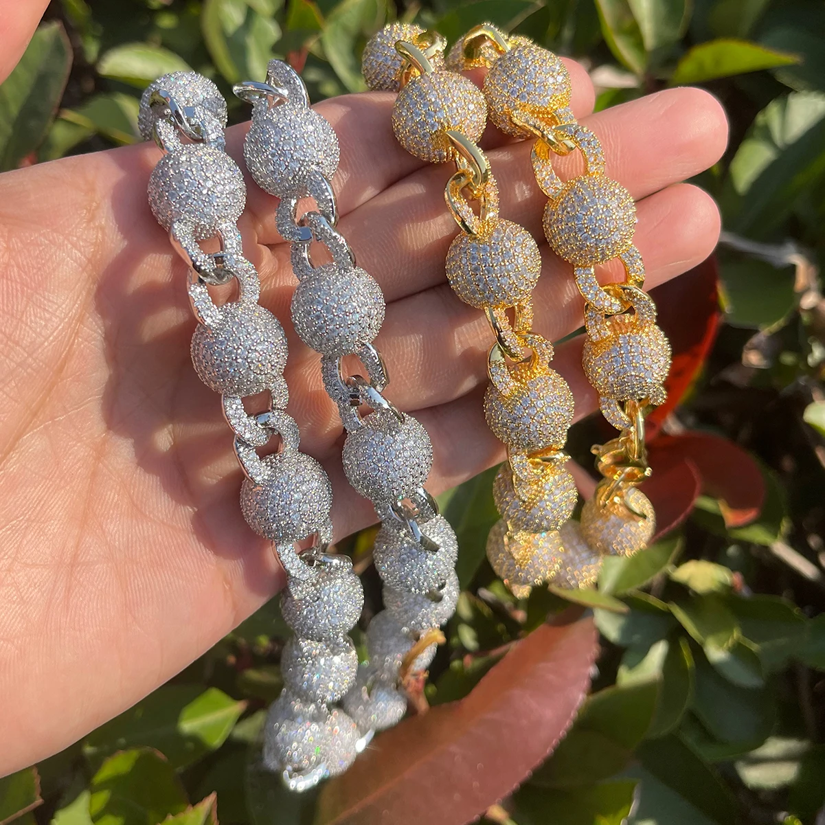 Bubble Letter 15MM Ball Necklace Choker for Men Cuban Link Chain Prong Setting Cubic Zirconia Hip Hop Jewelry