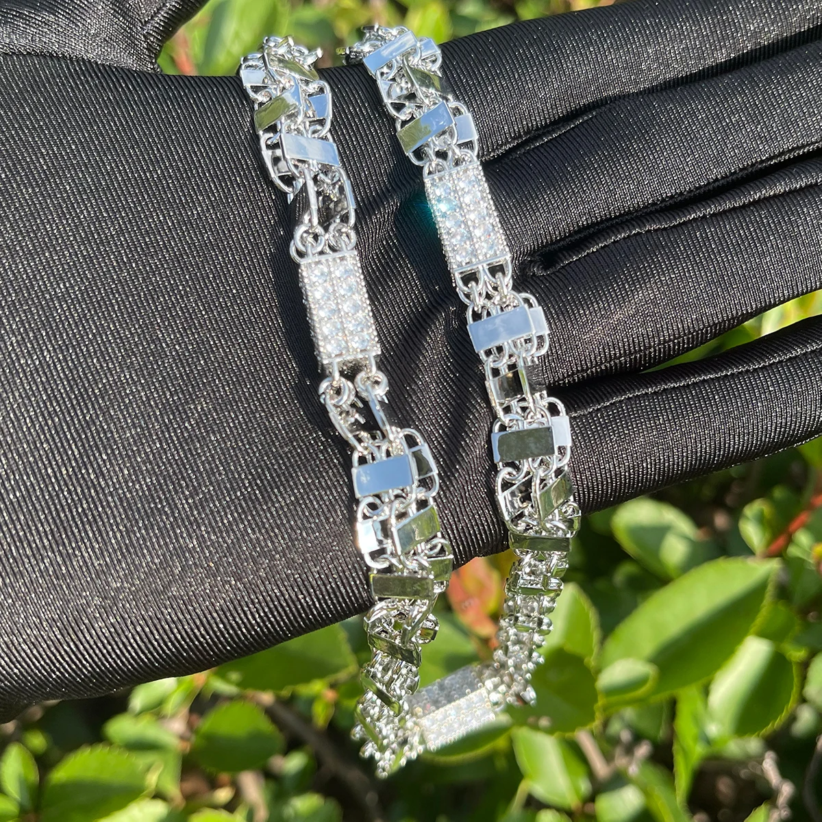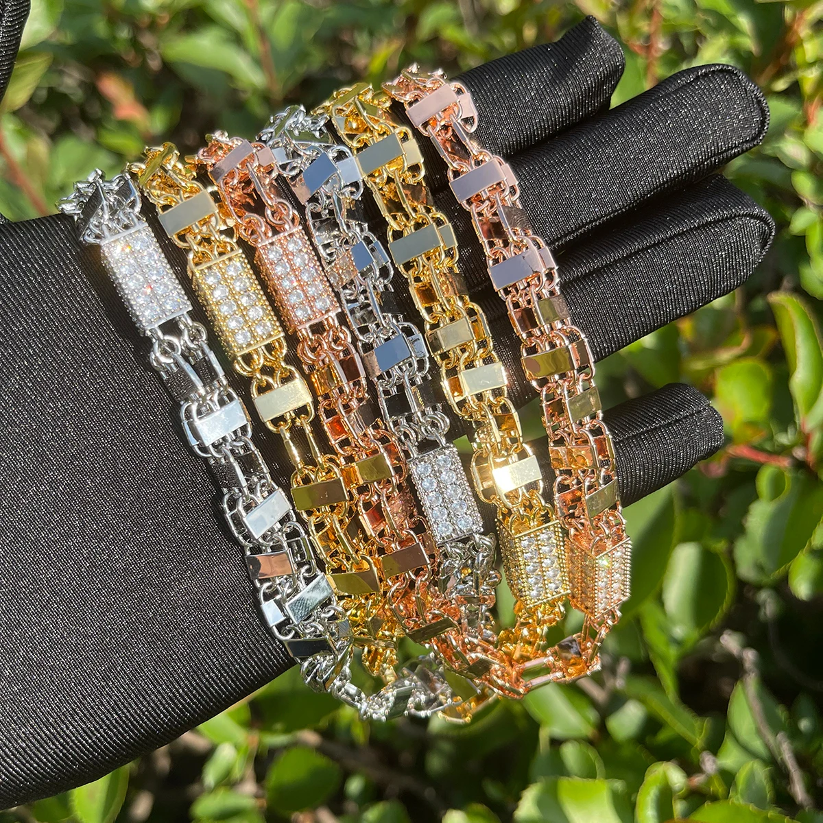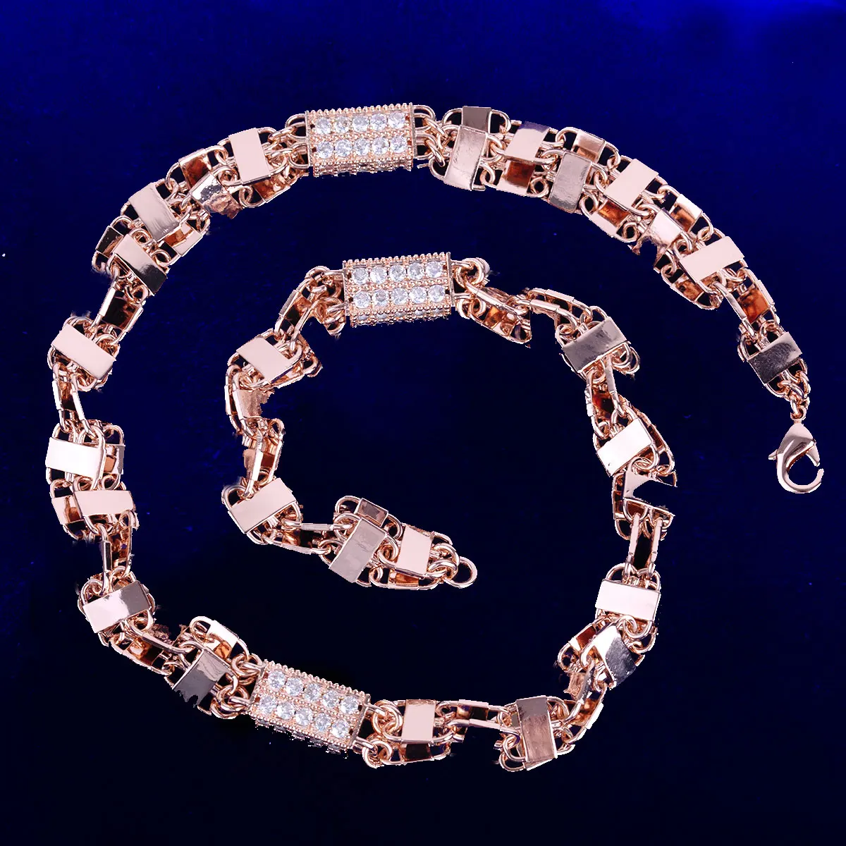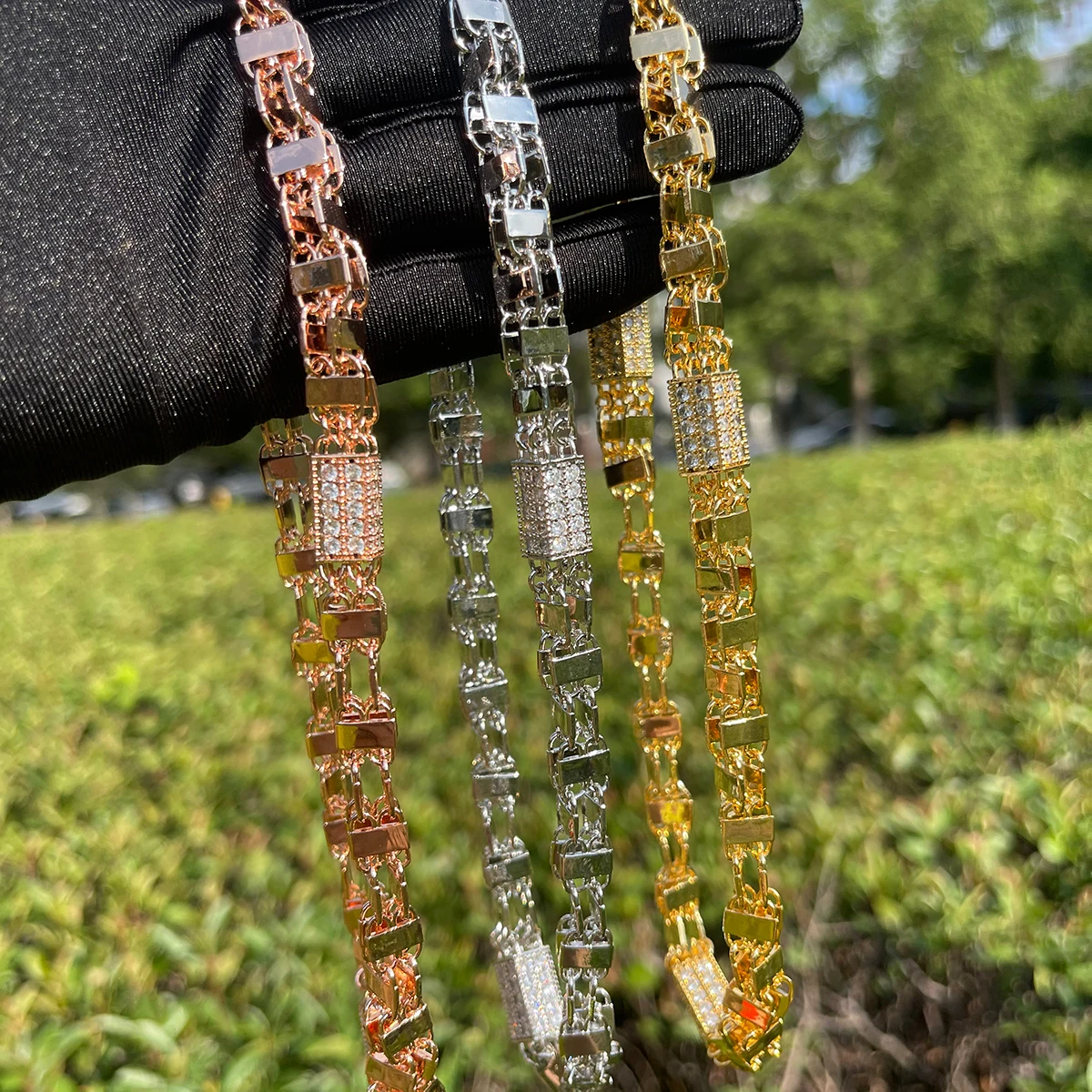 Bubble Letter 15MM Block Chain Hip Hop Choker Necklace Iced Out Micro Pave Cubic Zirconia Gold Color Link Fashion Punk Jewelry