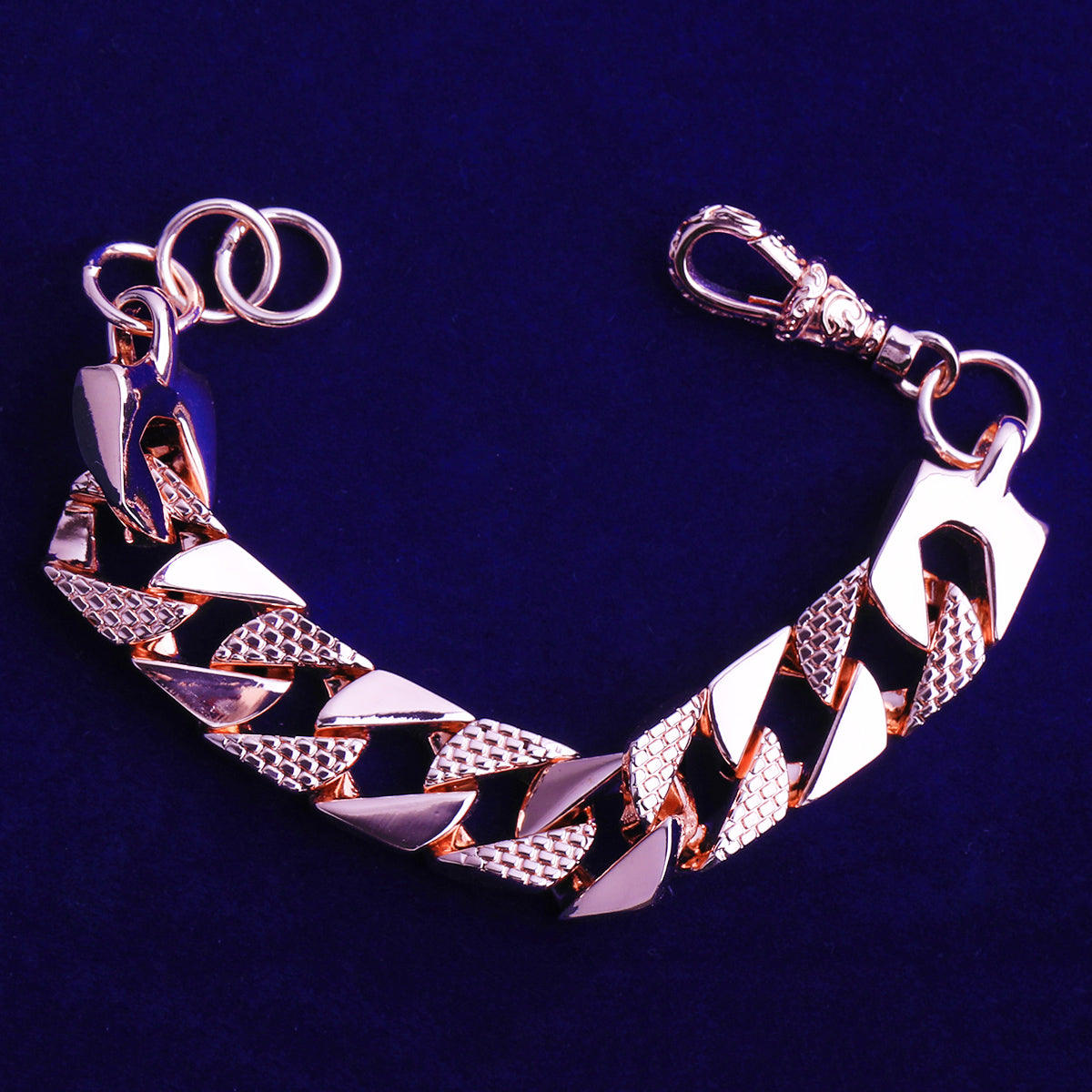 Bubble Letter 15mm Semi Patterned Cuban Link Belcher Bracelet for Men Real Copper Gold Plated Hip Hop Jewelry Albert Clasp