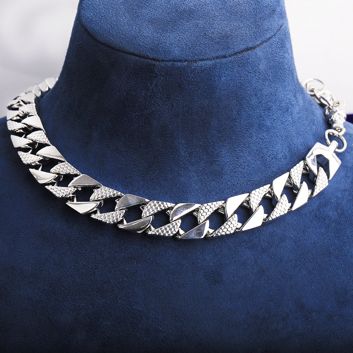 Bubble Letter 15mm Semi Patterned Cuban Link Belcher Chain Men Necklace Choker Real Copper Gold Plated Hip Hop Jewelry Alber Clasp