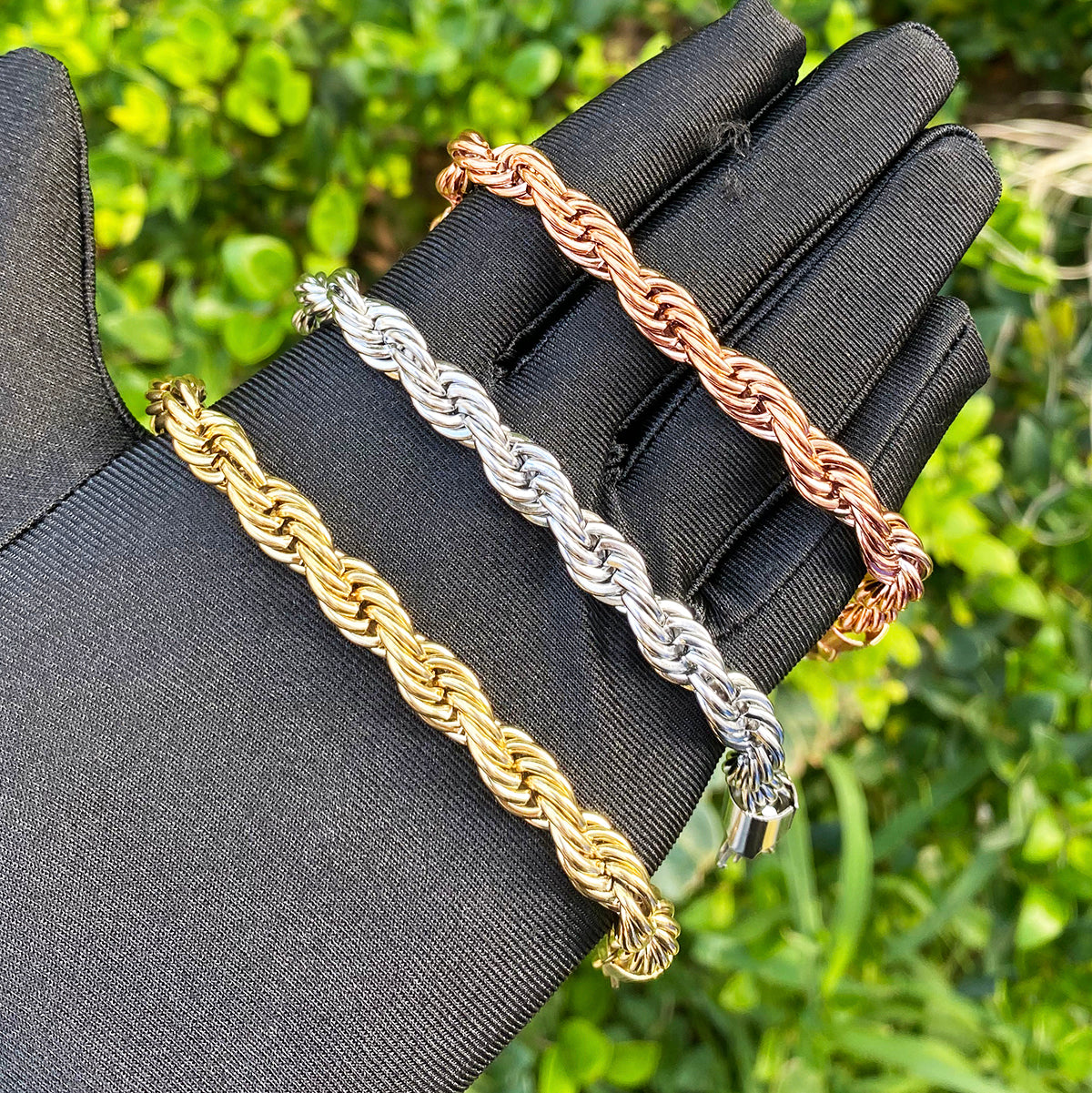 Bubble Letter 8mm Stainless Steel Rope Bracelet for Men PVD Plated Hip Hop Jewelry