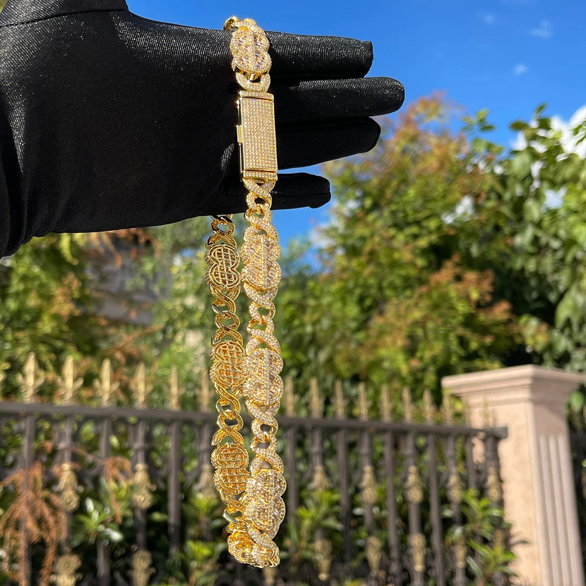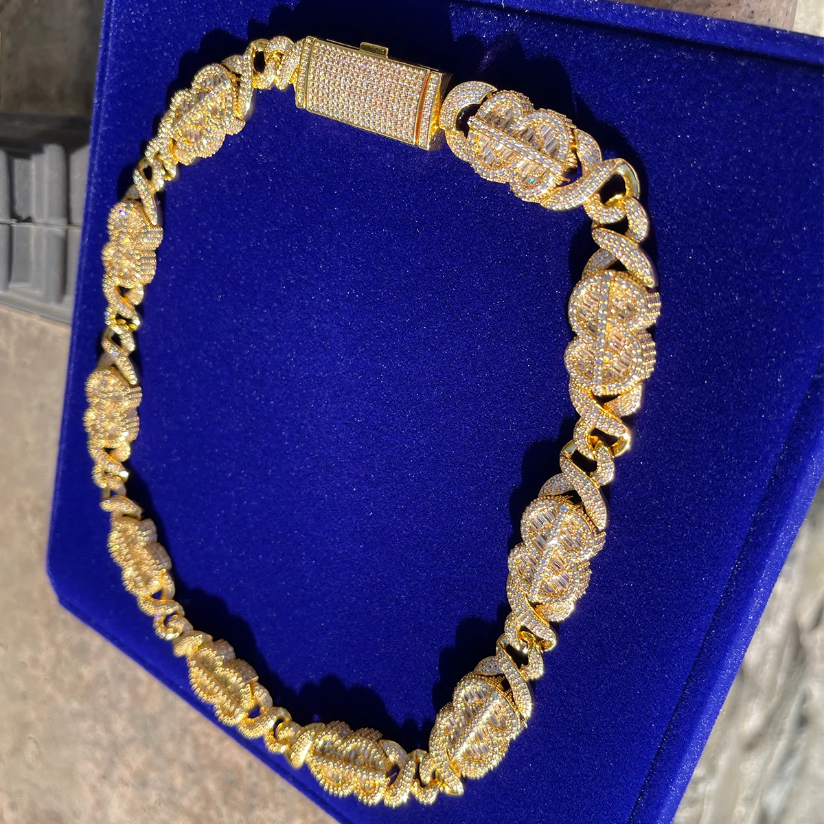 Bubble Letter Baguette 8 Shape Miami Cuban Link Chain for Men Iced Out Necklace Choker Prong Setting Real Gold Plated Jewelry