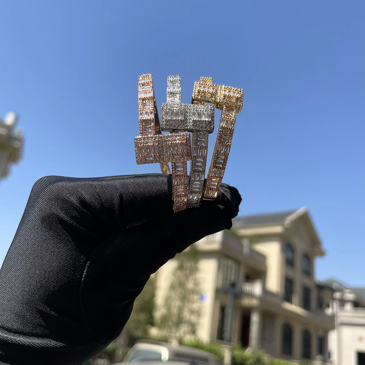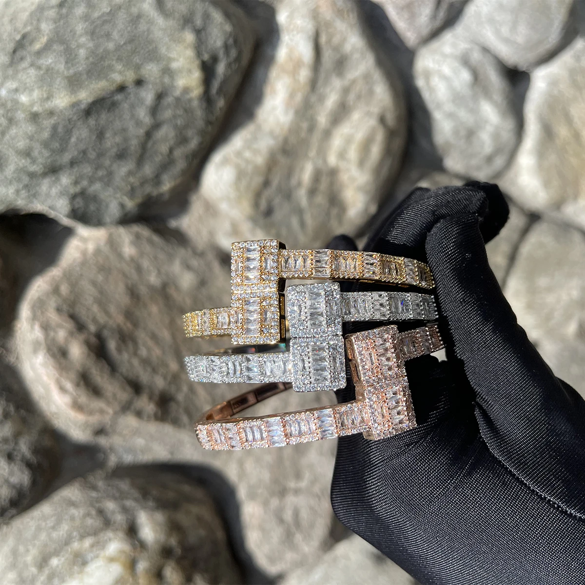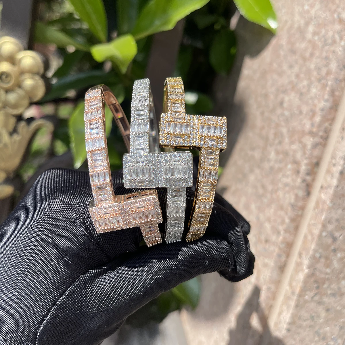 Bubble Letter Baguette Bangle for Women Rapper Iced Out Bracelets Hip Hop Jewelry 2022 Trend Free Shipping Items Best Selling