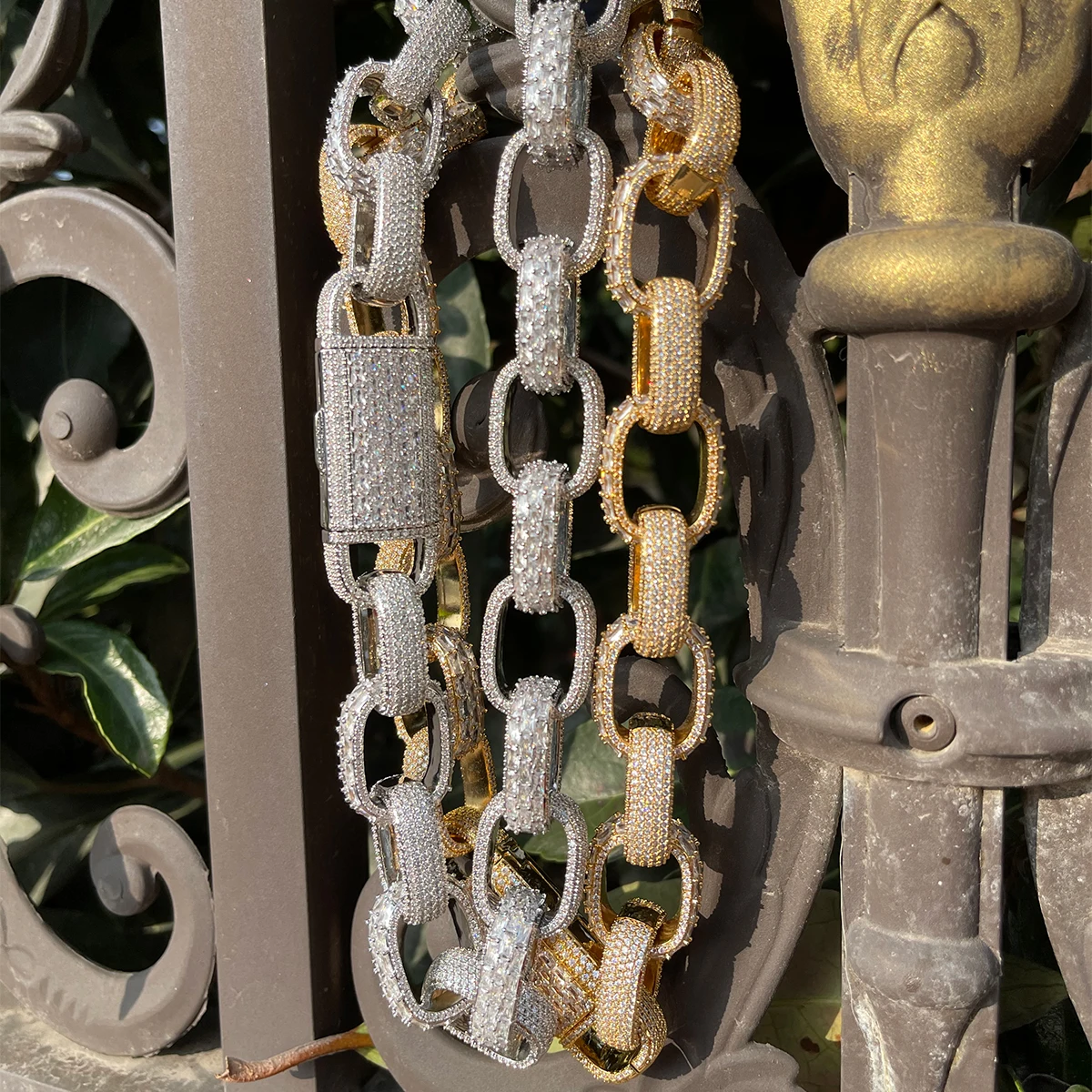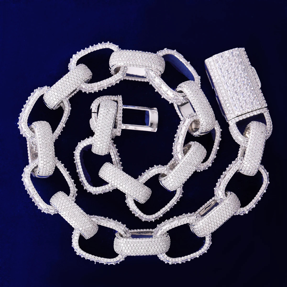 Bubble Letter Baguette Box Link Chain for Men Iced Out Choker Necklace Prong Setting Cubic Zirconia Hip Hop Jewelry