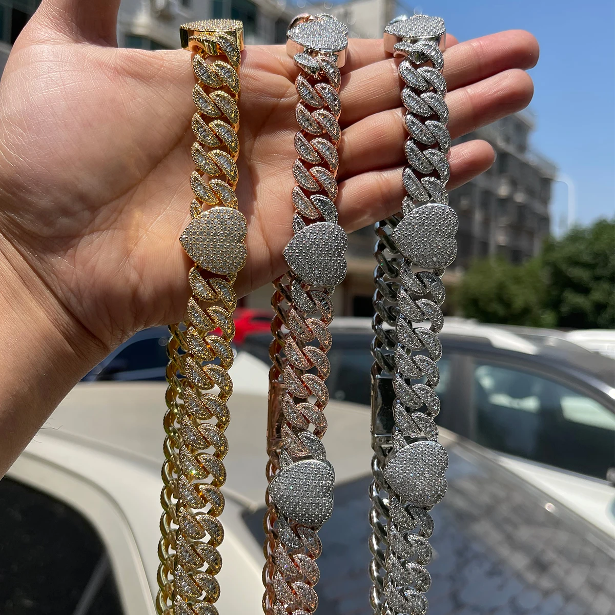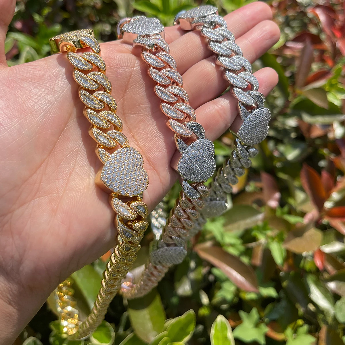Bubble Letter Baguette Cuban Link Heart Necklace Choker for Women Full Iced Out Cubic Zirconia Hip Hop Fashion Jewelry