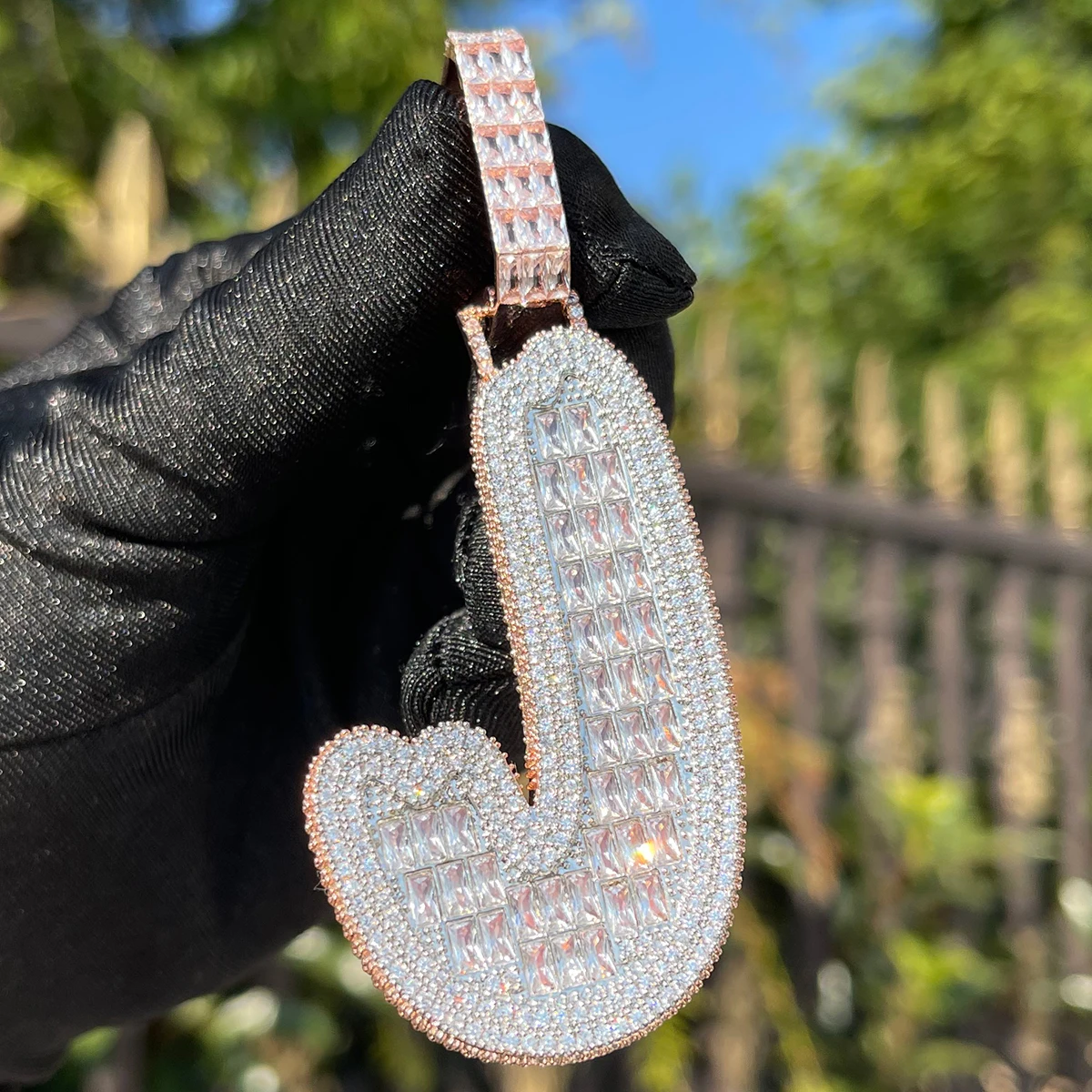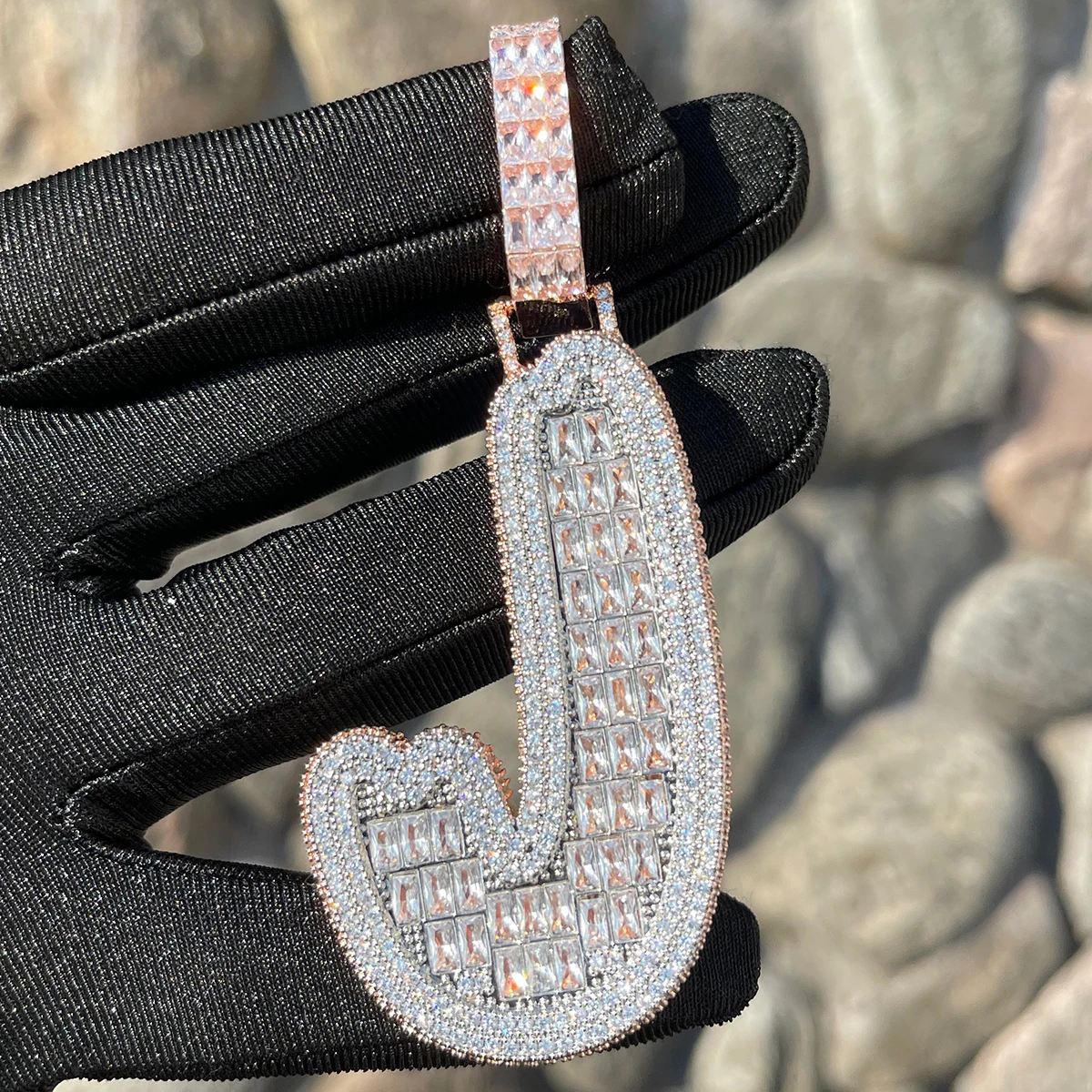 Bubble Letter Baguette Initial Cursive Jewelry Iced Out Pendant Prong Setting Made By Hand Customized Name Necklace for Men