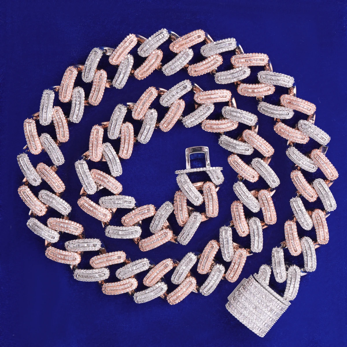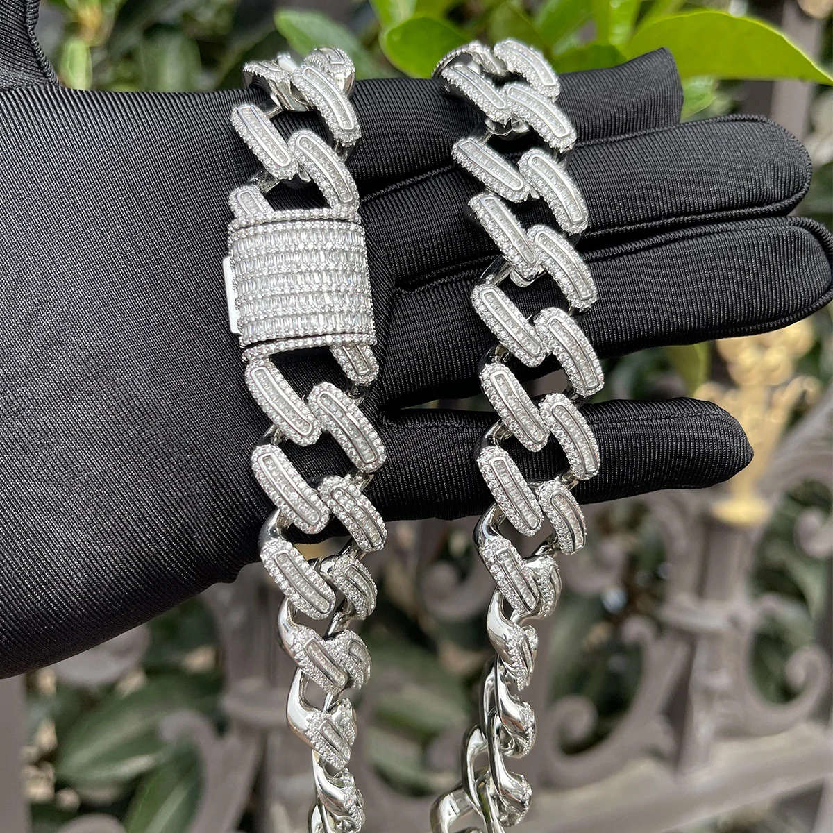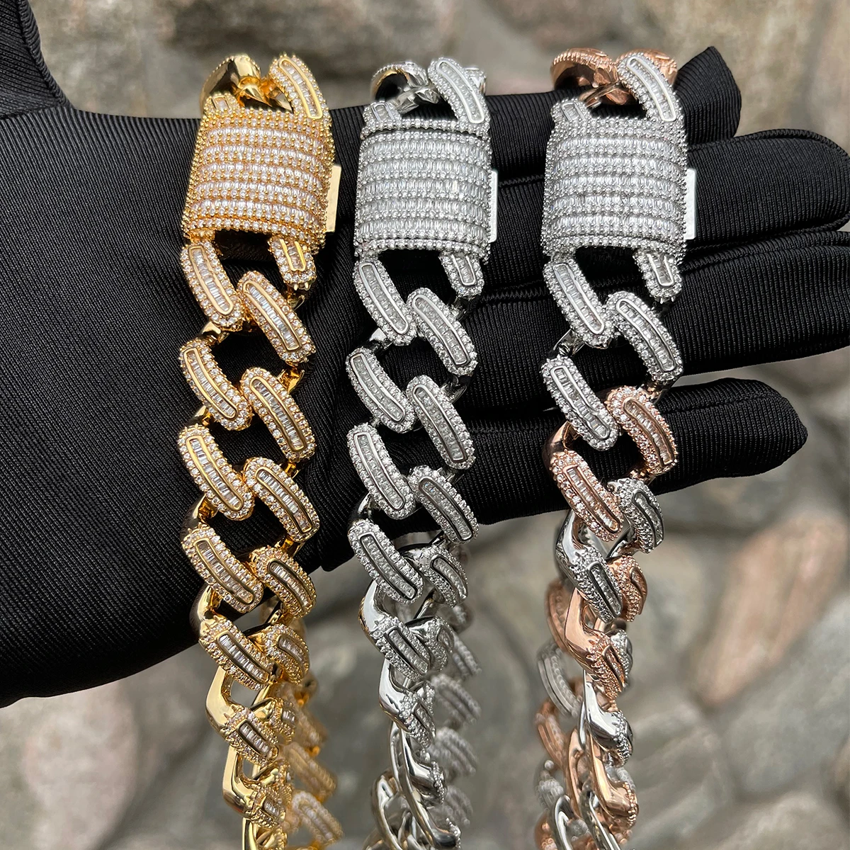 Bubble Letter Baguette Miami Cuban Link Chain for Men Prong Setting Choker Necklace Cubic Zirconia Two Tone Hip Hop Jewelry