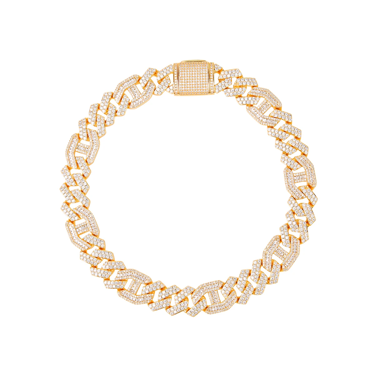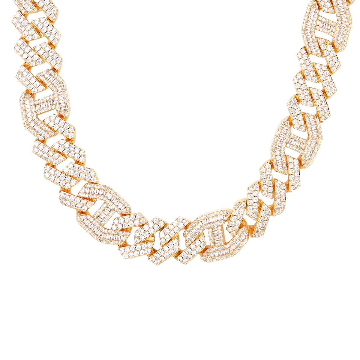 Bubble Letter Baguette Necklace for Men Miami Cuban Chain Solid Back Gold Color Hip Hop Jewelry Free Shipping Items Christmas