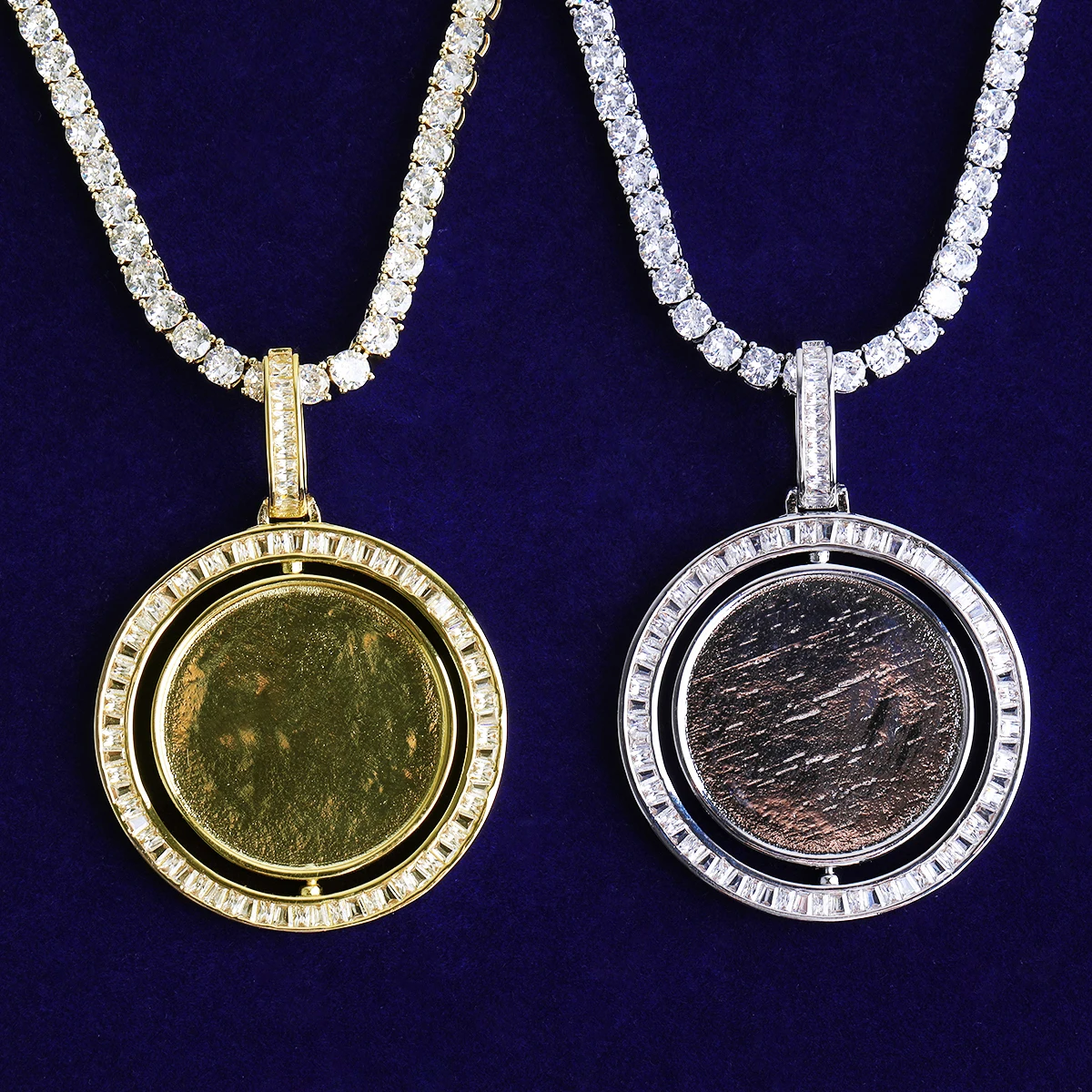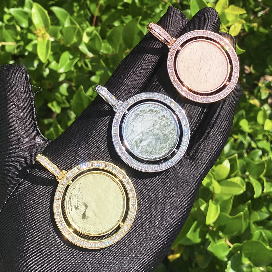 Bubble Letter Baguette Rotating Customized Photo Necklace Pendant for Men Real Gold Plated 5A Cubic Zirconia Hip Hop Jewelry