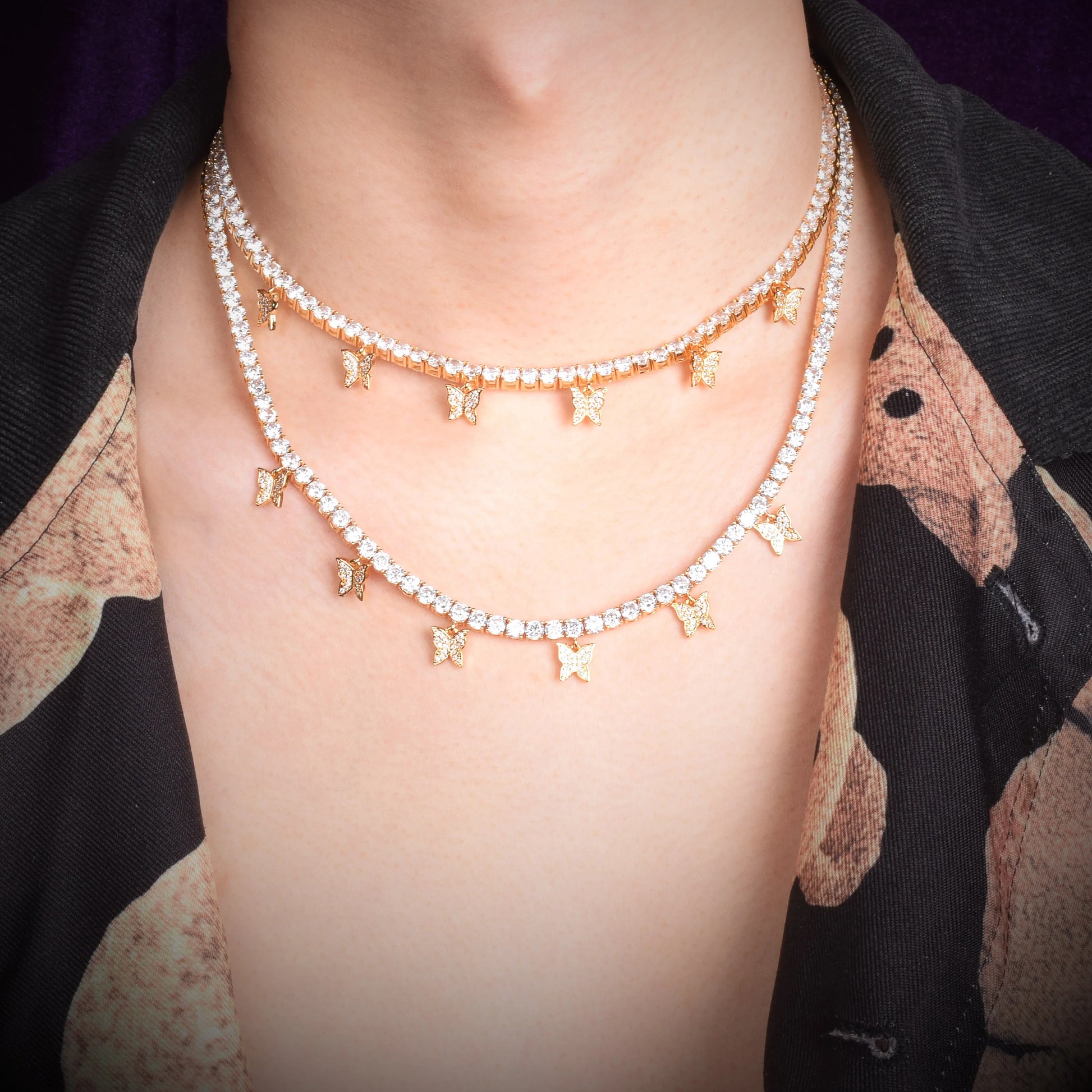 Bubble Letter Butterfly Tennis Chain for Men Necklace Choker Fashion Jewelry 2021 Trend Free Shipping Items