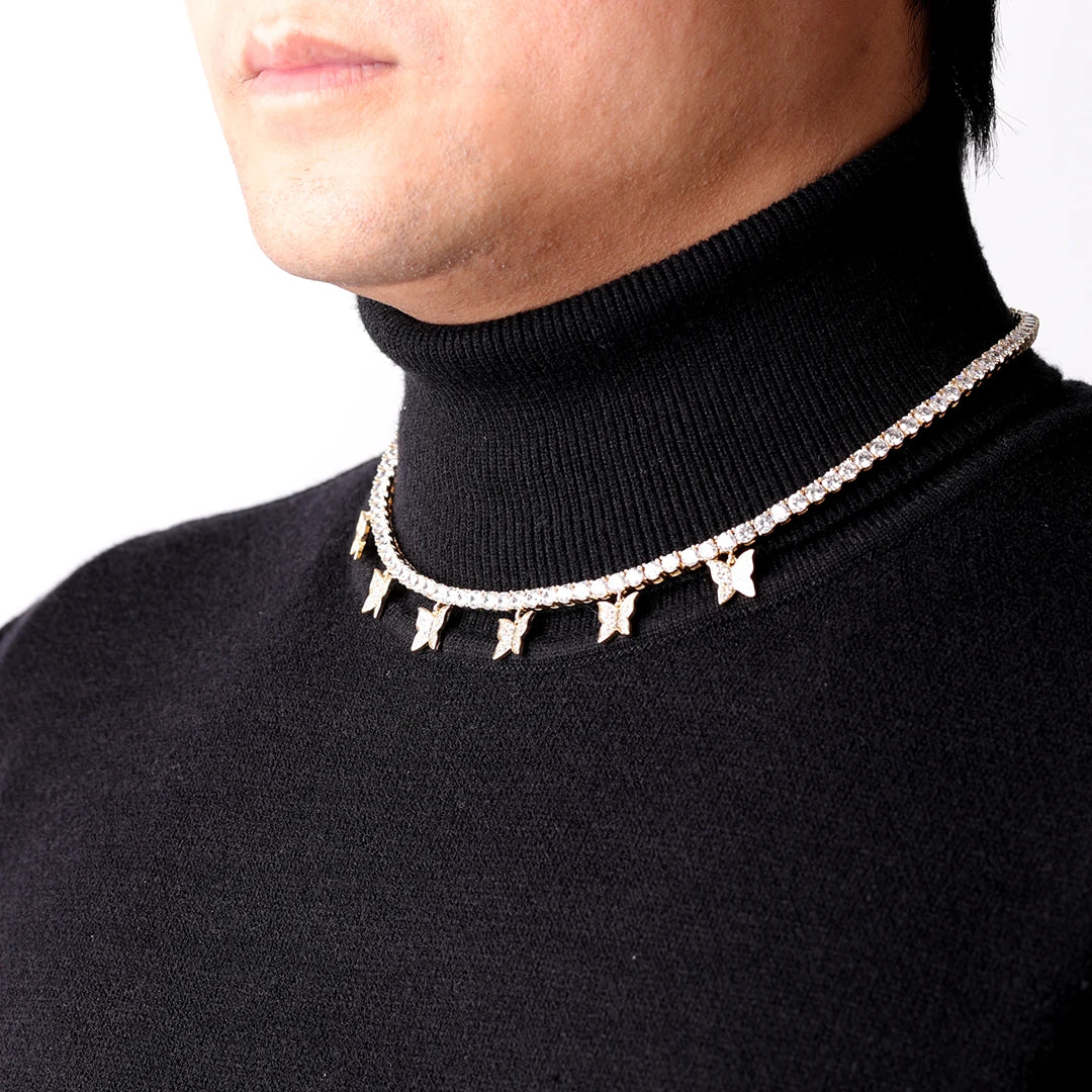 Bubble Letter Butterfly Tennis Chain for Women Necklace Pink Hip Hop Fashion Jewelry Adjustable Free Shipping Items