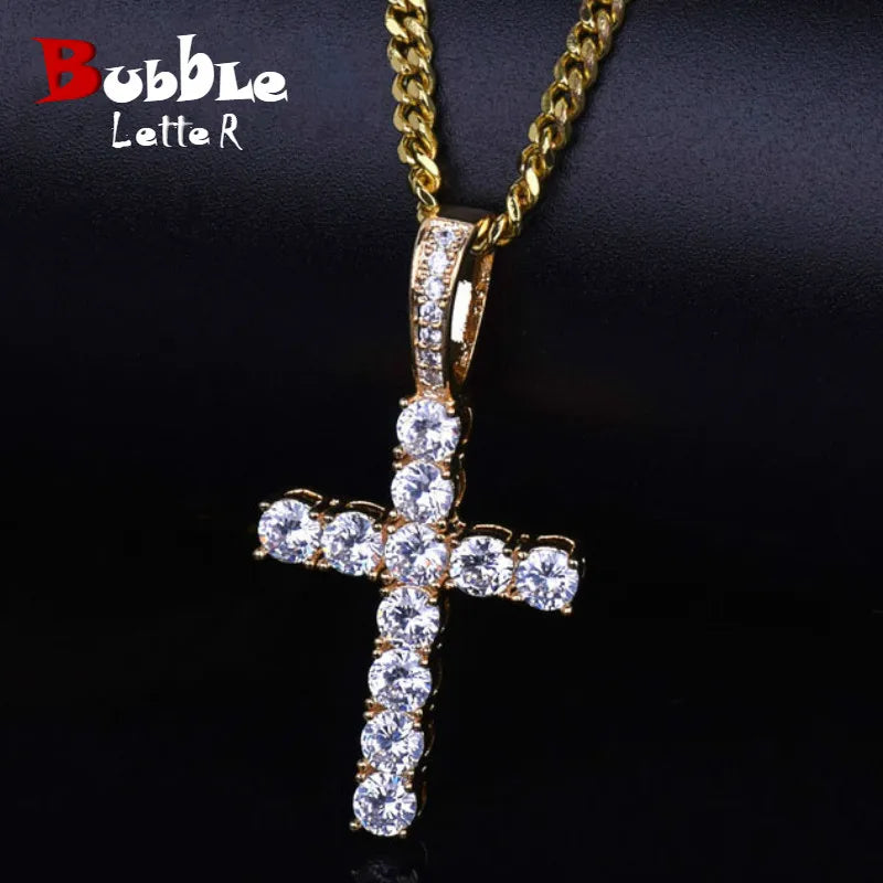 Bubble Letter Cross Necklace for Men Pendant Gold Color Copper Material Hip Hop Jewelry