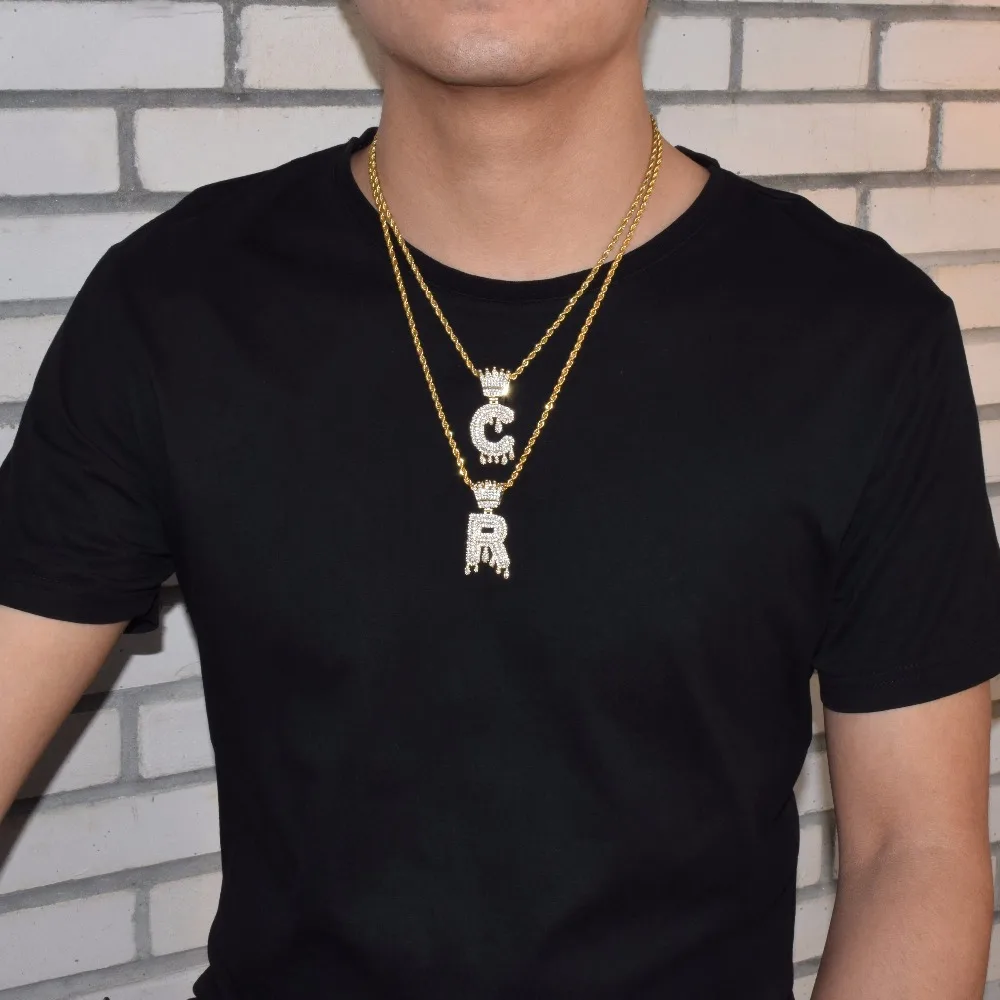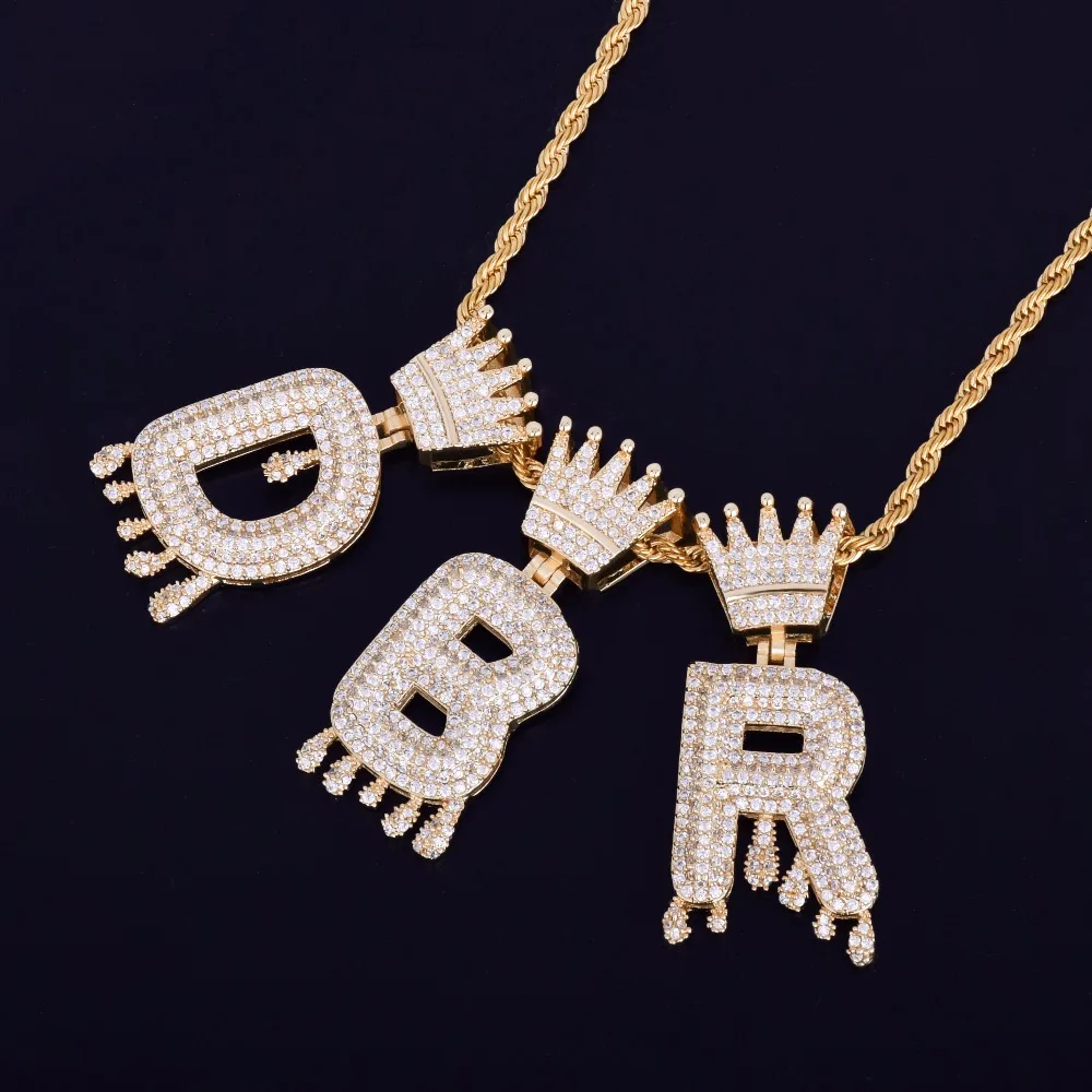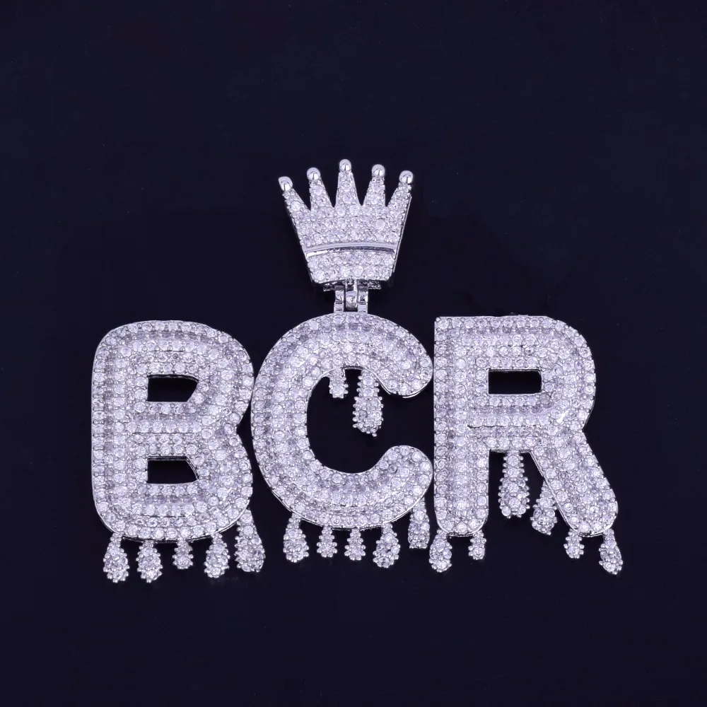 Bubble Letter Crown Bail Drip Initials Chain Necklaces & Pendant For Men Women Gold Color Cubic Zircon Hip Hop Jewelry