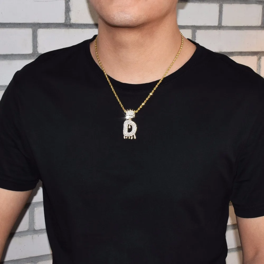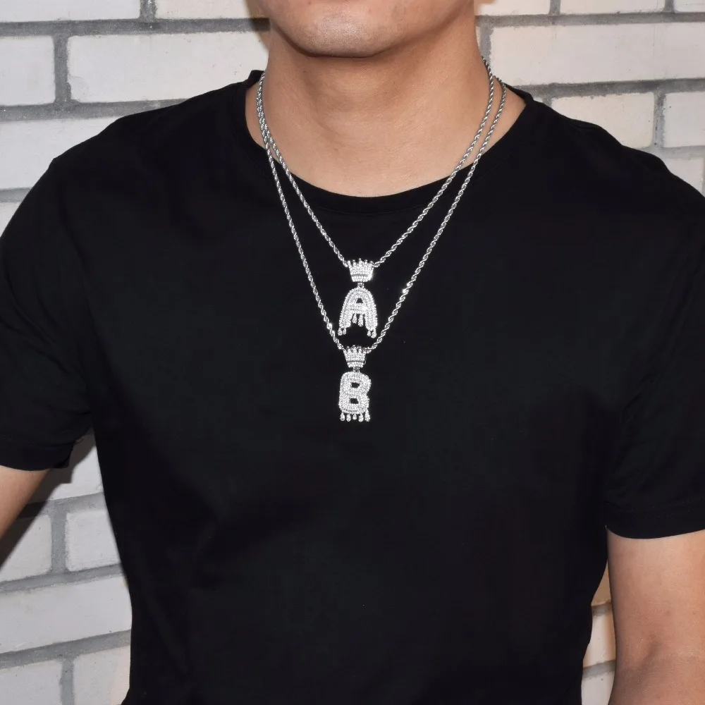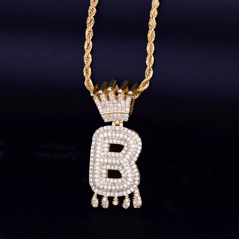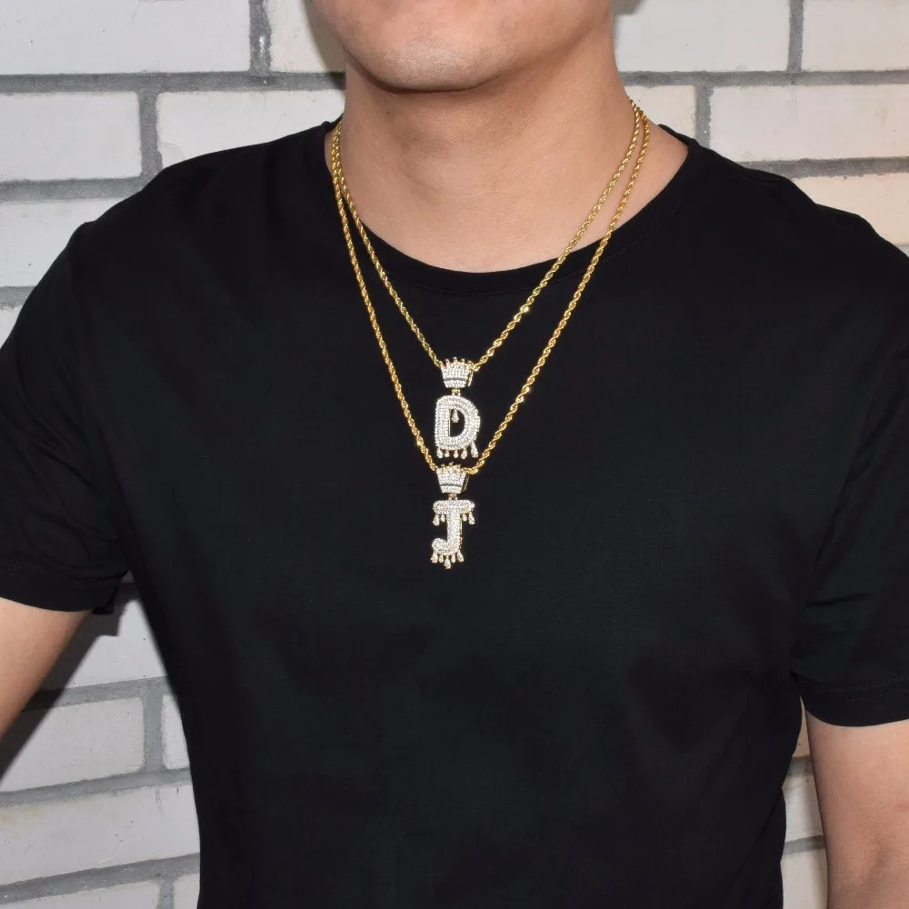 Bubble Letter Crown Bail Drip Initials Chain Necklaces & Pendant For Men Women Gold Color Cubic Zircon Hip Hop Jewelry