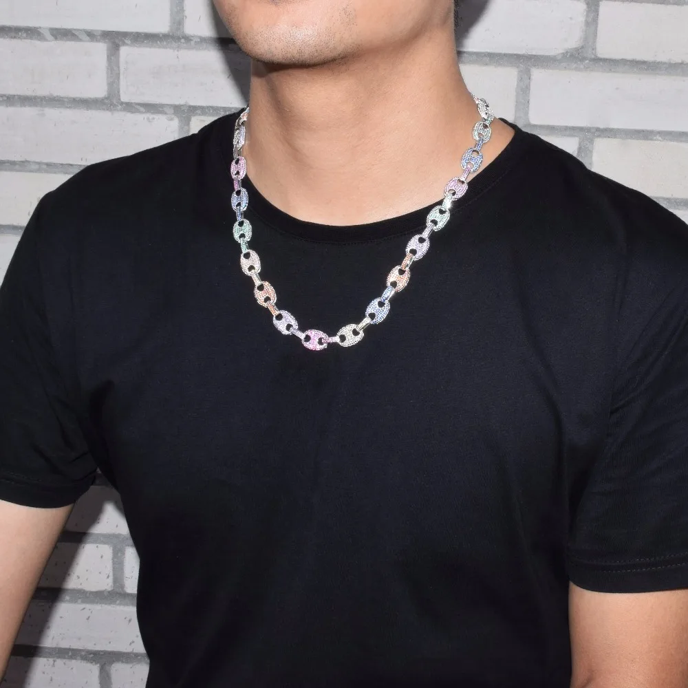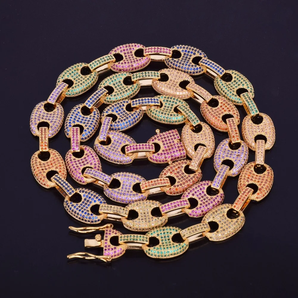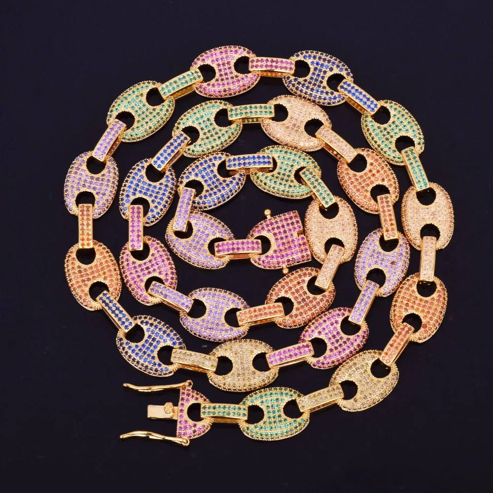 Bubble Letter Cuban Link Chain for Men Necklace Bling Hip Hop Jewelry Real Copper Iced Out 2021 Trend Free Shipping Gift