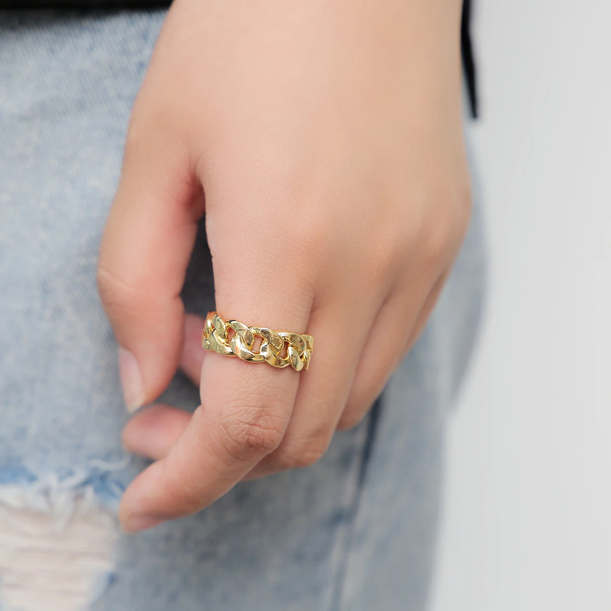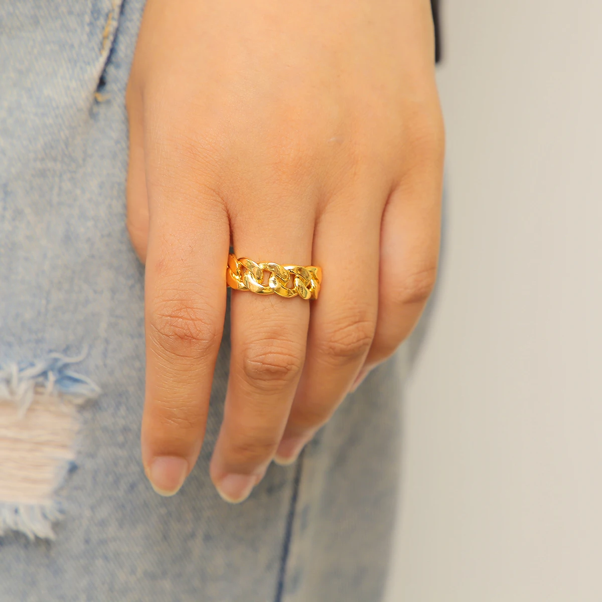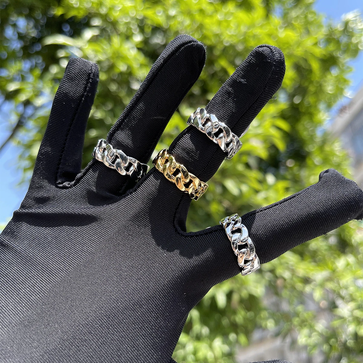 Bubble Letter Cuban Link Rings for Men Glossy Real Gold Plated Hip Hop Jewelry 2022 Trend Wholesale Drop Shipping Items