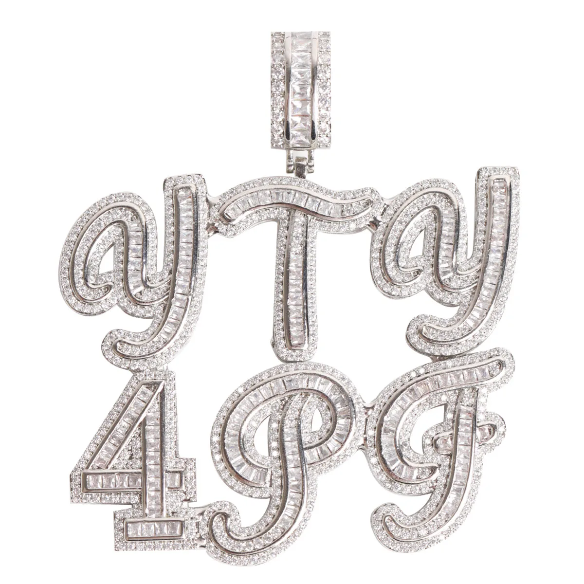 Bubble Letter Custom Name Necklace for Men Personalized Pendant Baguette Cursive Font Real Plated Jewelry Collares Hombre