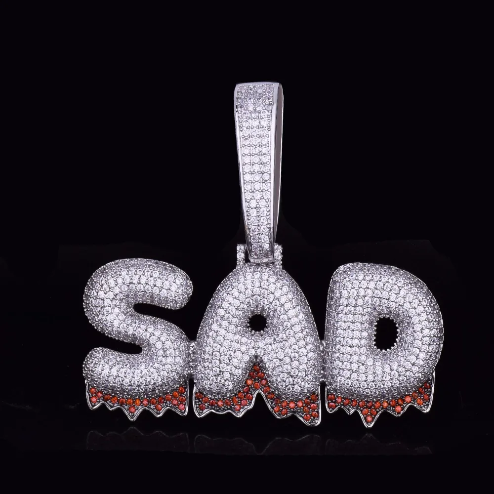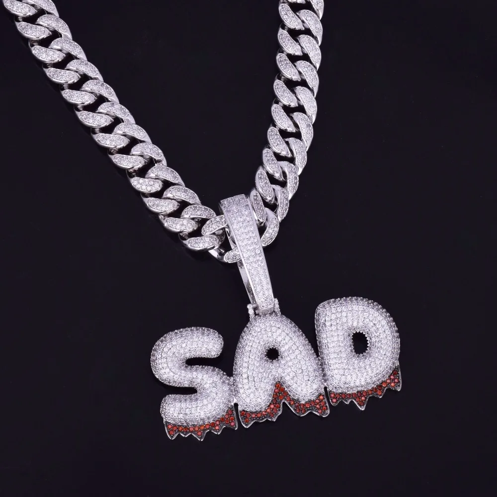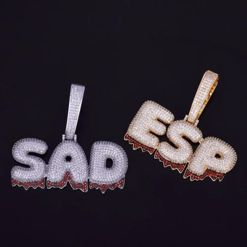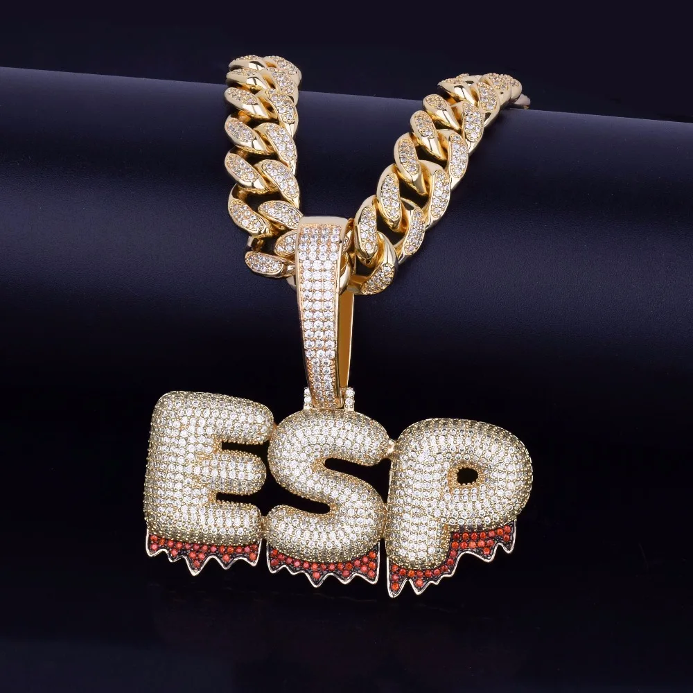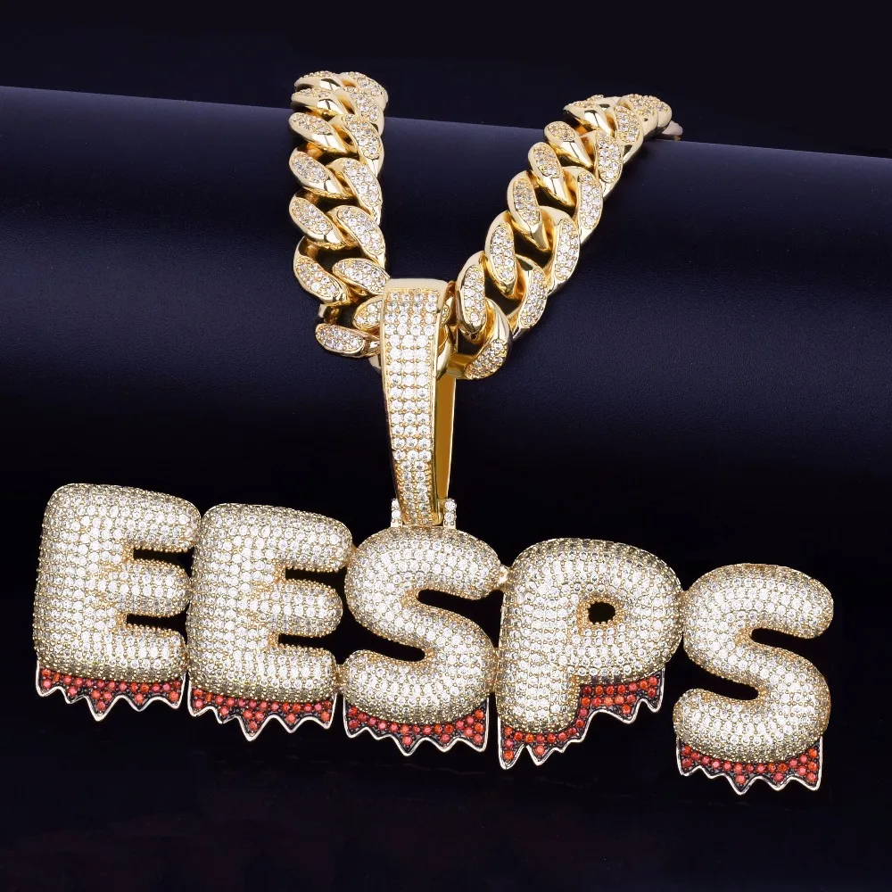 Bubble Letter Custom Name Necklace for Men Red Drippy Personalized Pendants Zircon Hip Hop Jewelry Real Gold Plated Iced Out