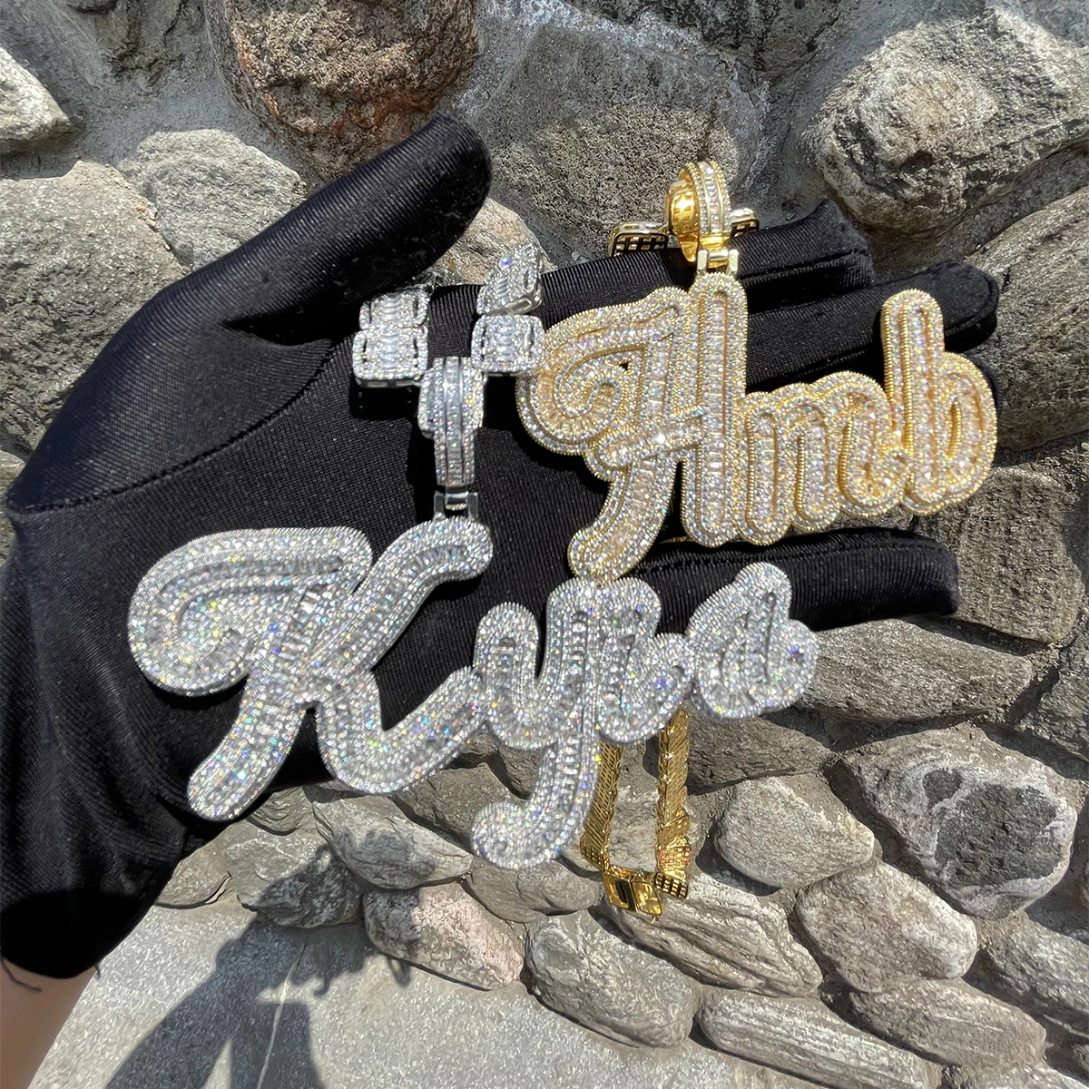 Bubble Letter Custom Name Necklace for Women Baguette Personalized Pendants Hip Hop Jewelry 2022 Trend Best Sellings