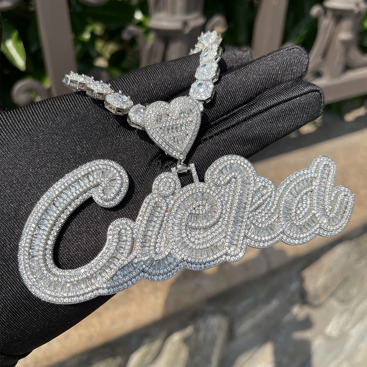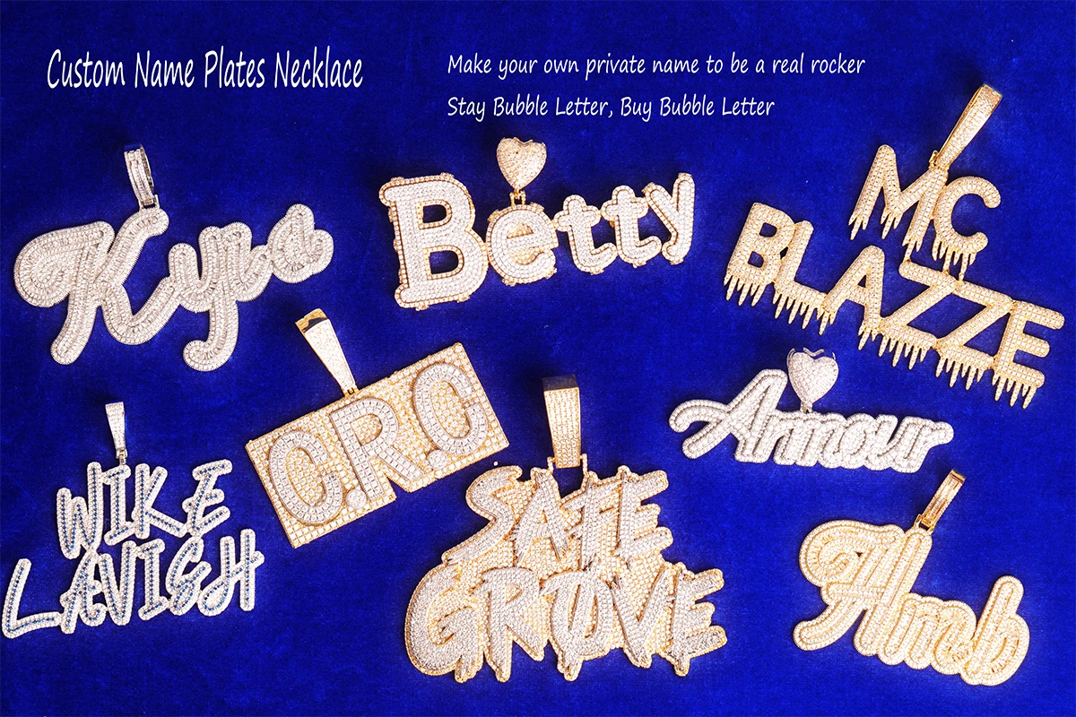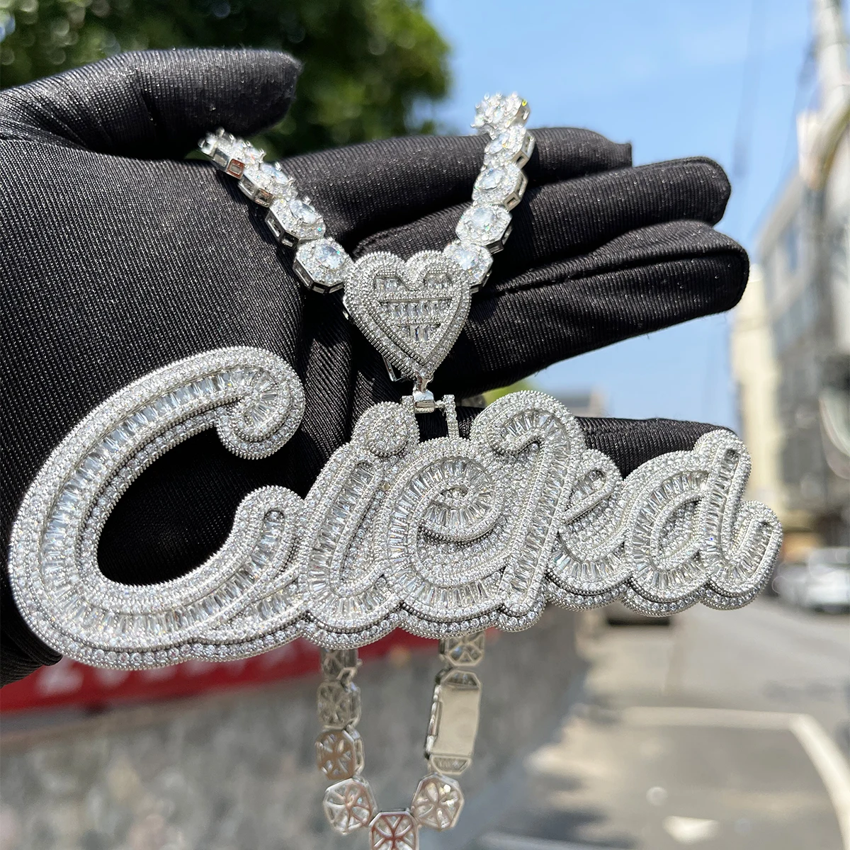 Bubble Letter Custom Name Necklace for Women Iced Out Personalized Pendant Charms Bling 2022 Trend Hip Hop Jewelry Heart Bail