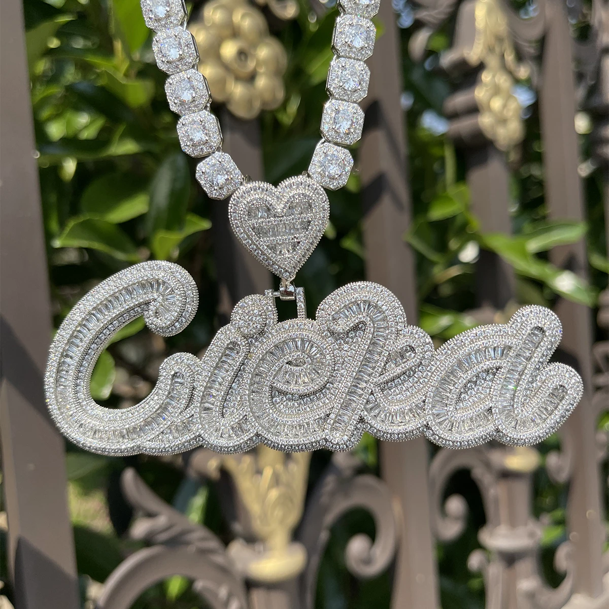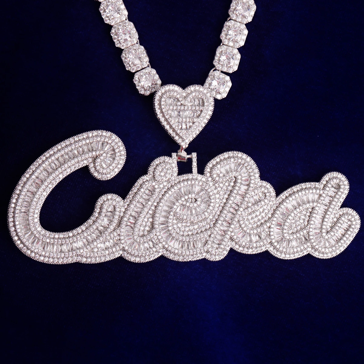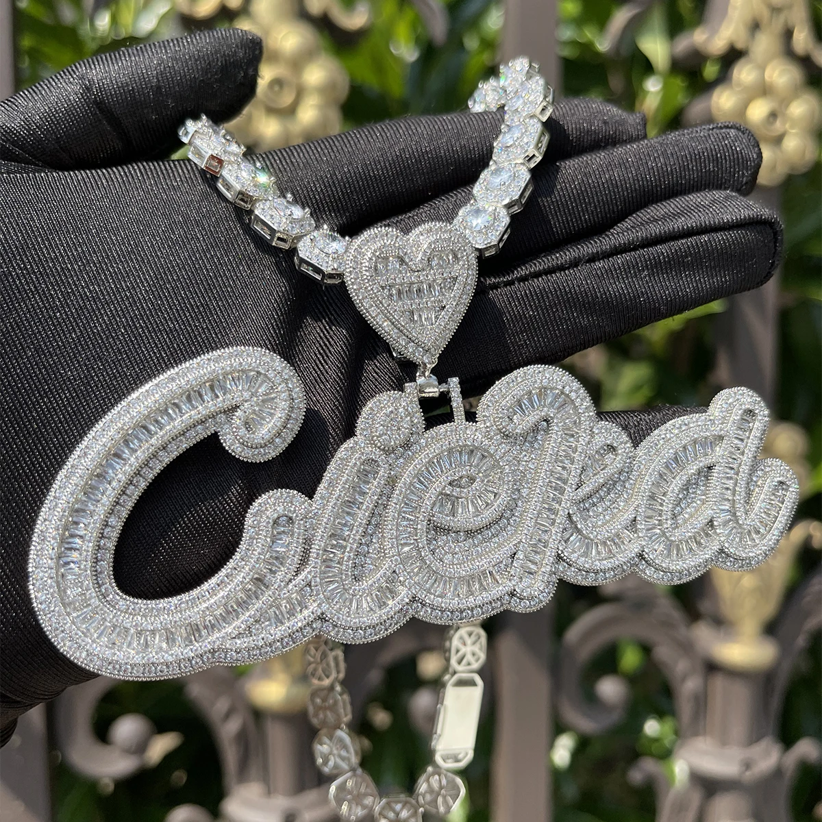 Bubble Letter Custom Name Necklace for Women Iced Out Personalized Pendant Charms Bling 2022 Trend Hip Hop Jewelry Heart Bail
