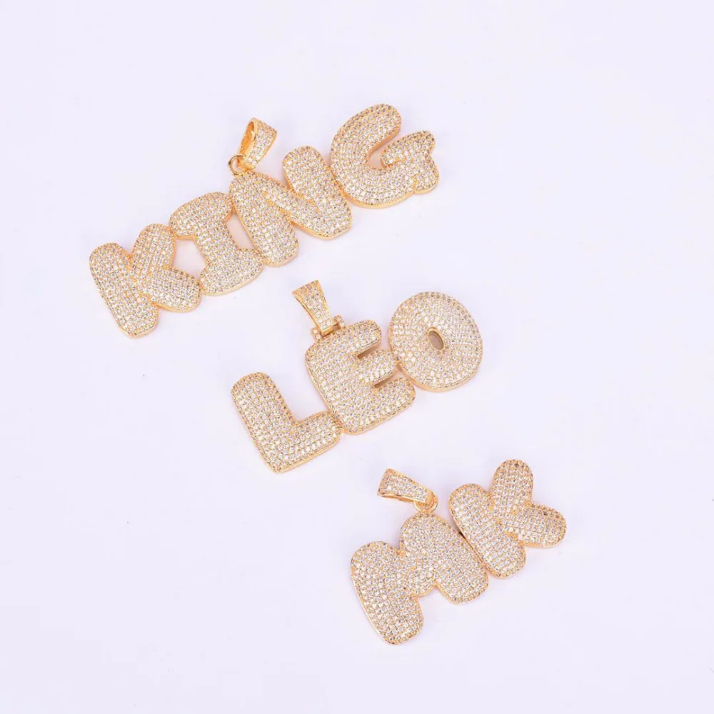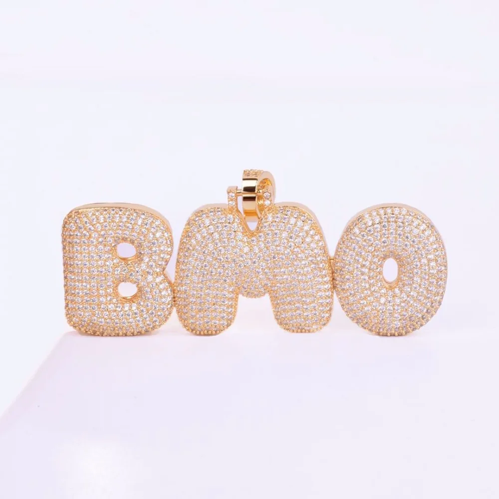 Bubble Letter Custom Name Necklaces Personalized Pendants Real Gold Plated Hip Hop Jewelry Collares Hombre