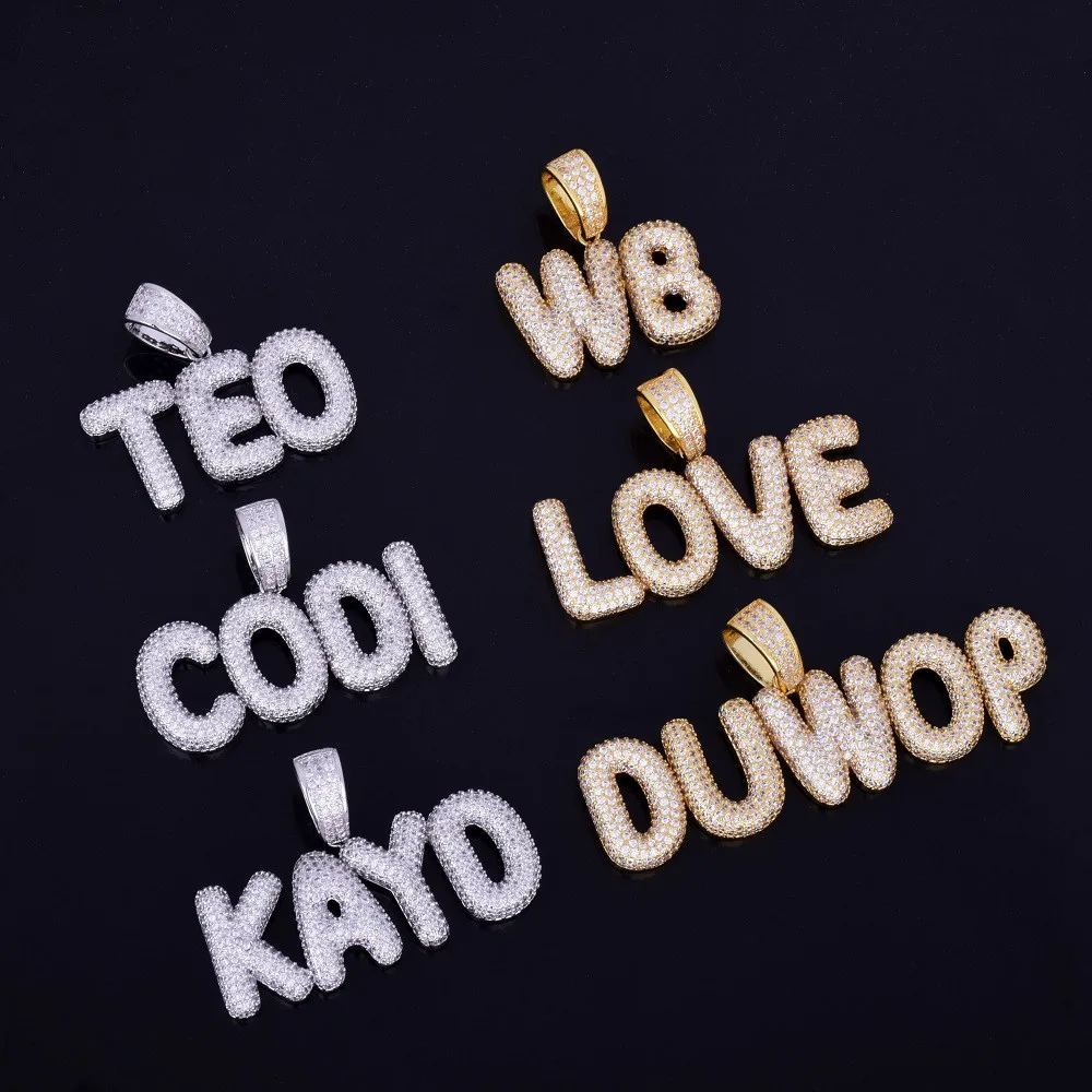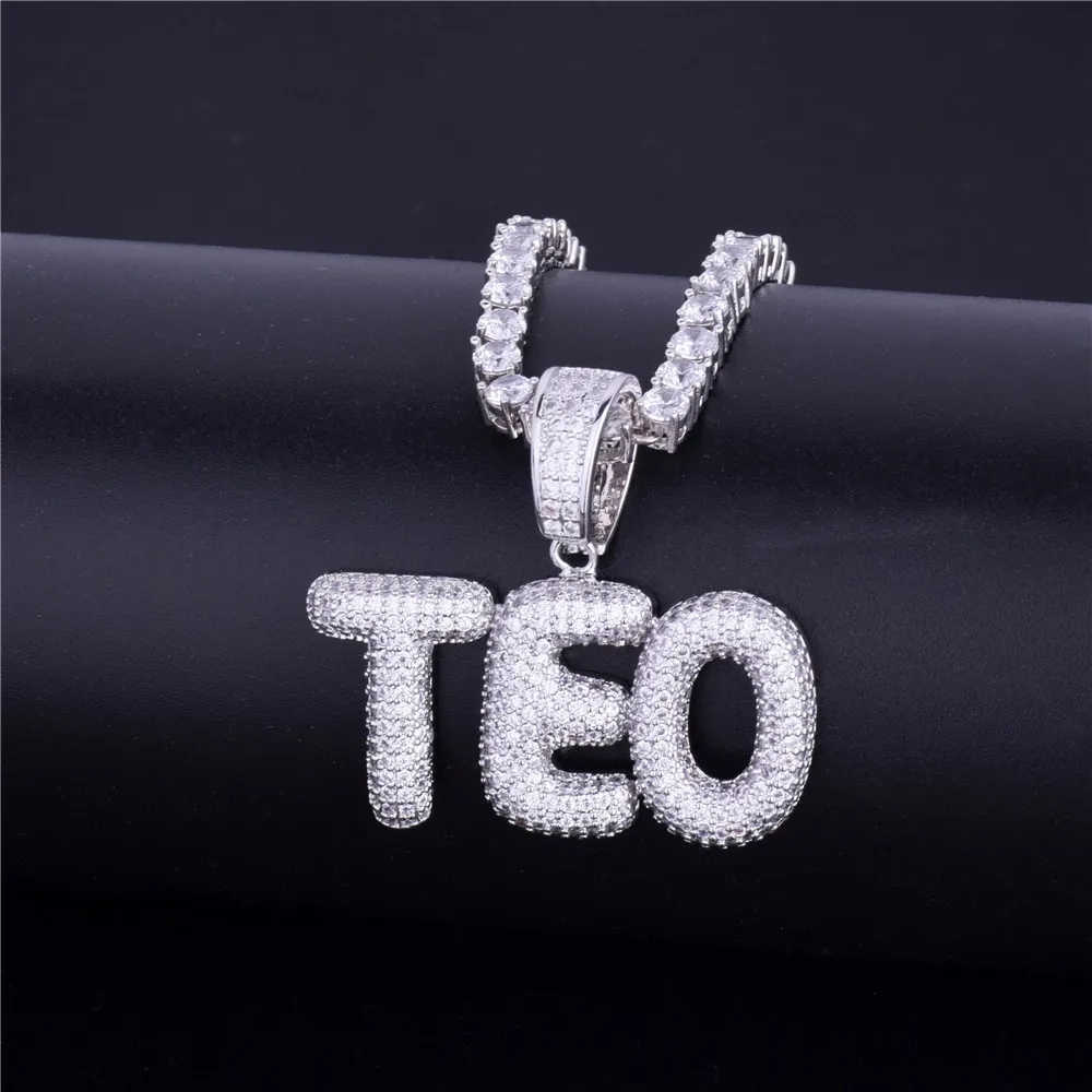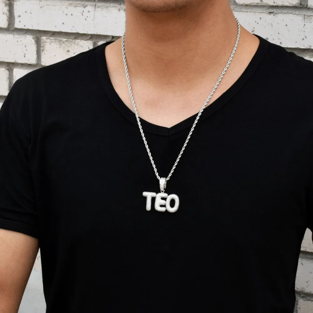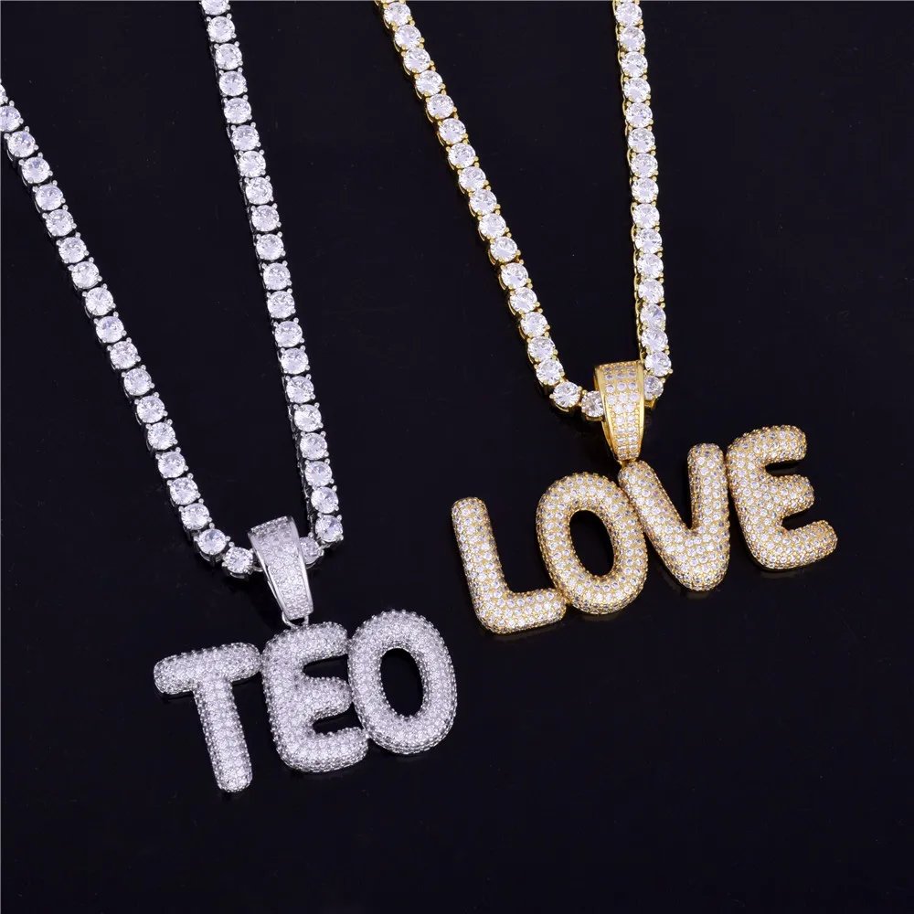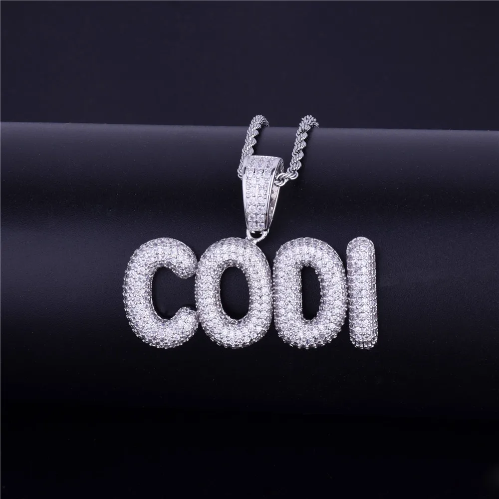 Bubble Letter Custom Name Plates Necklaces for Men Personalized Pendant Charm Zircon Hip Hop Jewelry Iced Out Collares