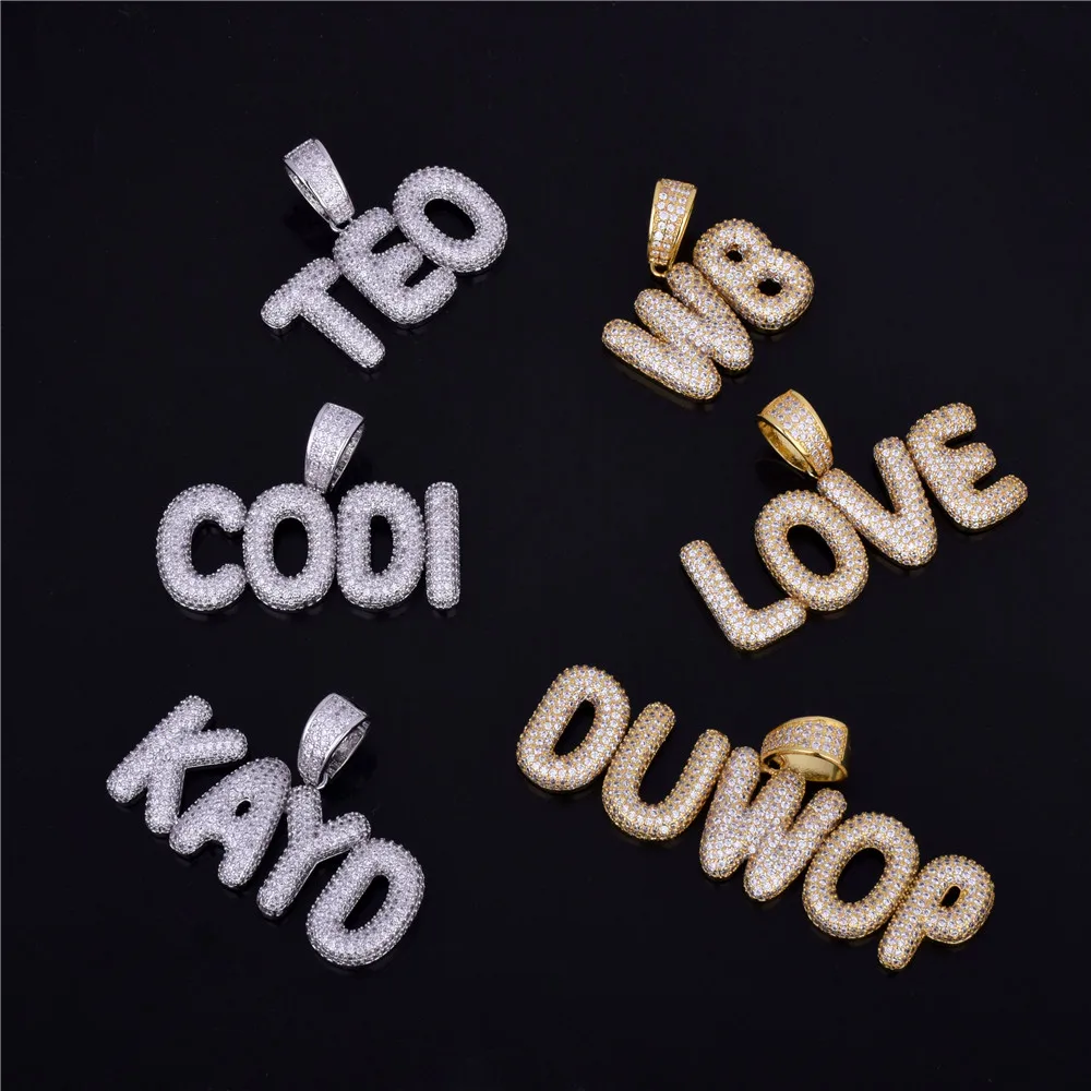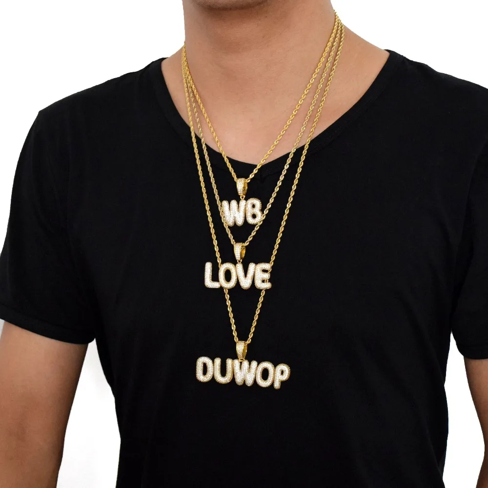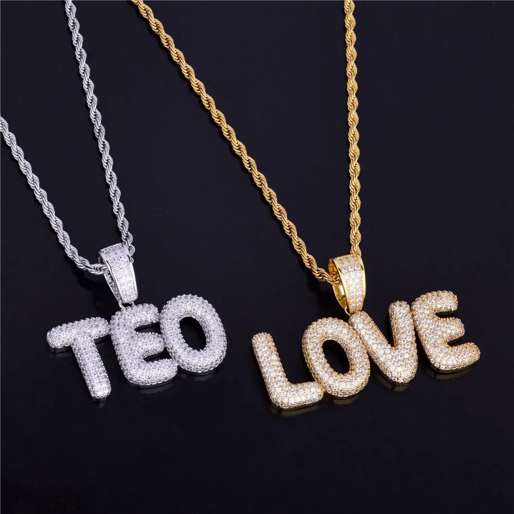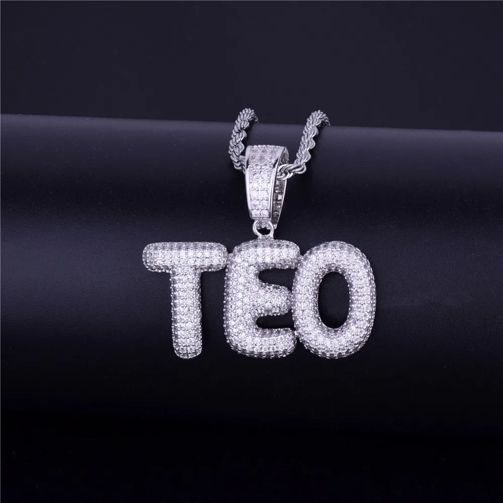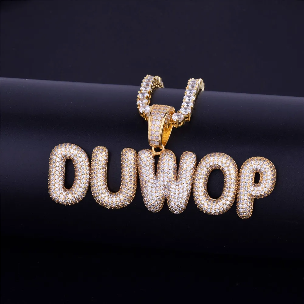 Bubble Letter Custom Name Plates Necklaces for Men Personalized Pendant Charm Zircon Hip Hop Jewelry Iced Out Collares