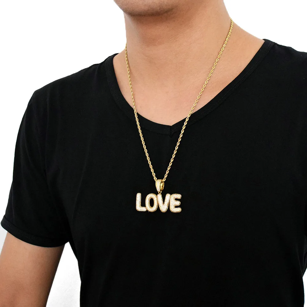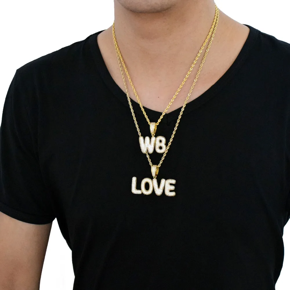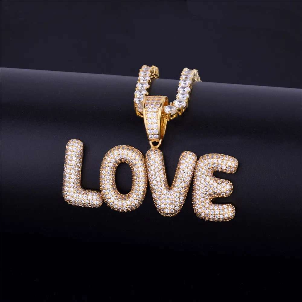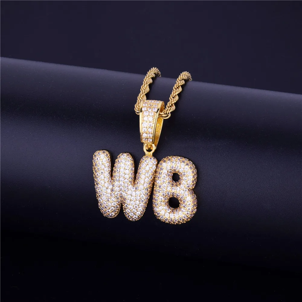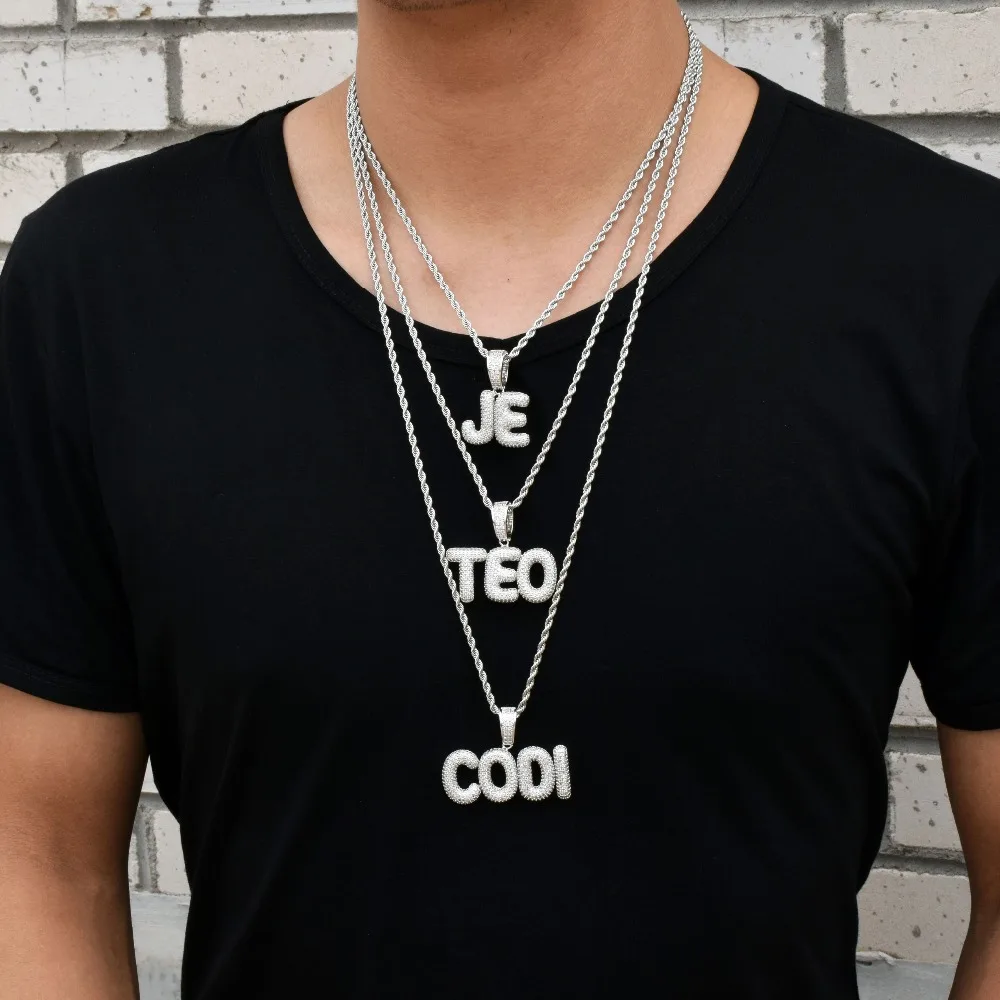 Bubble Letter Custom Name Plates Necklaces for Men Personalized Pendant Charm Zircon Hip Hop Jewelry Iced Out Collares