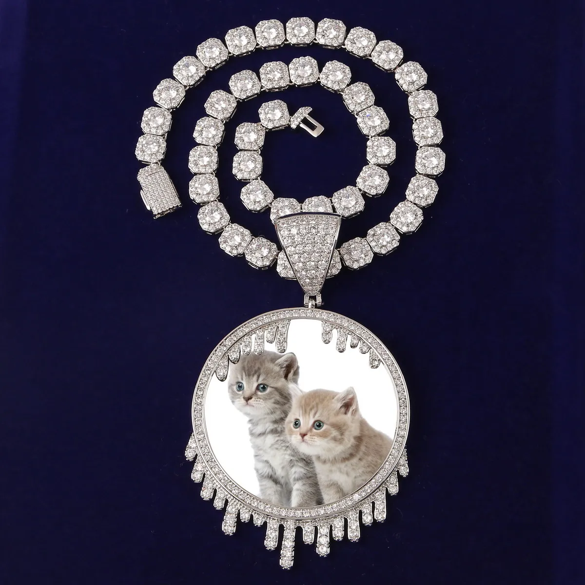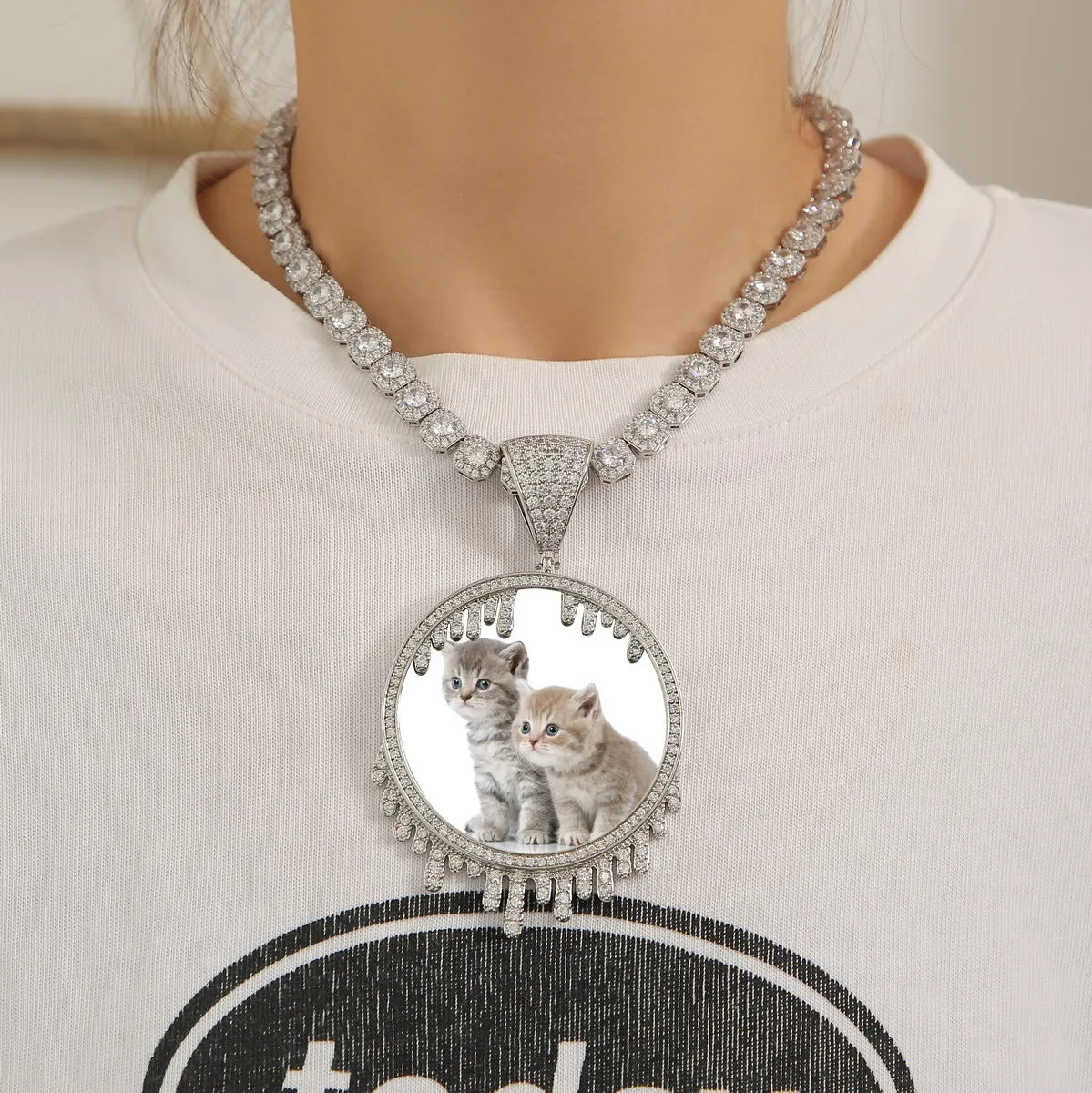 Bubble Letter Custom Photo Necklace for Men Picture Memory Medallion Pendant Solid Back Charms Hip Hop Fashion Jewelry