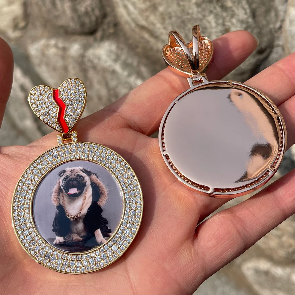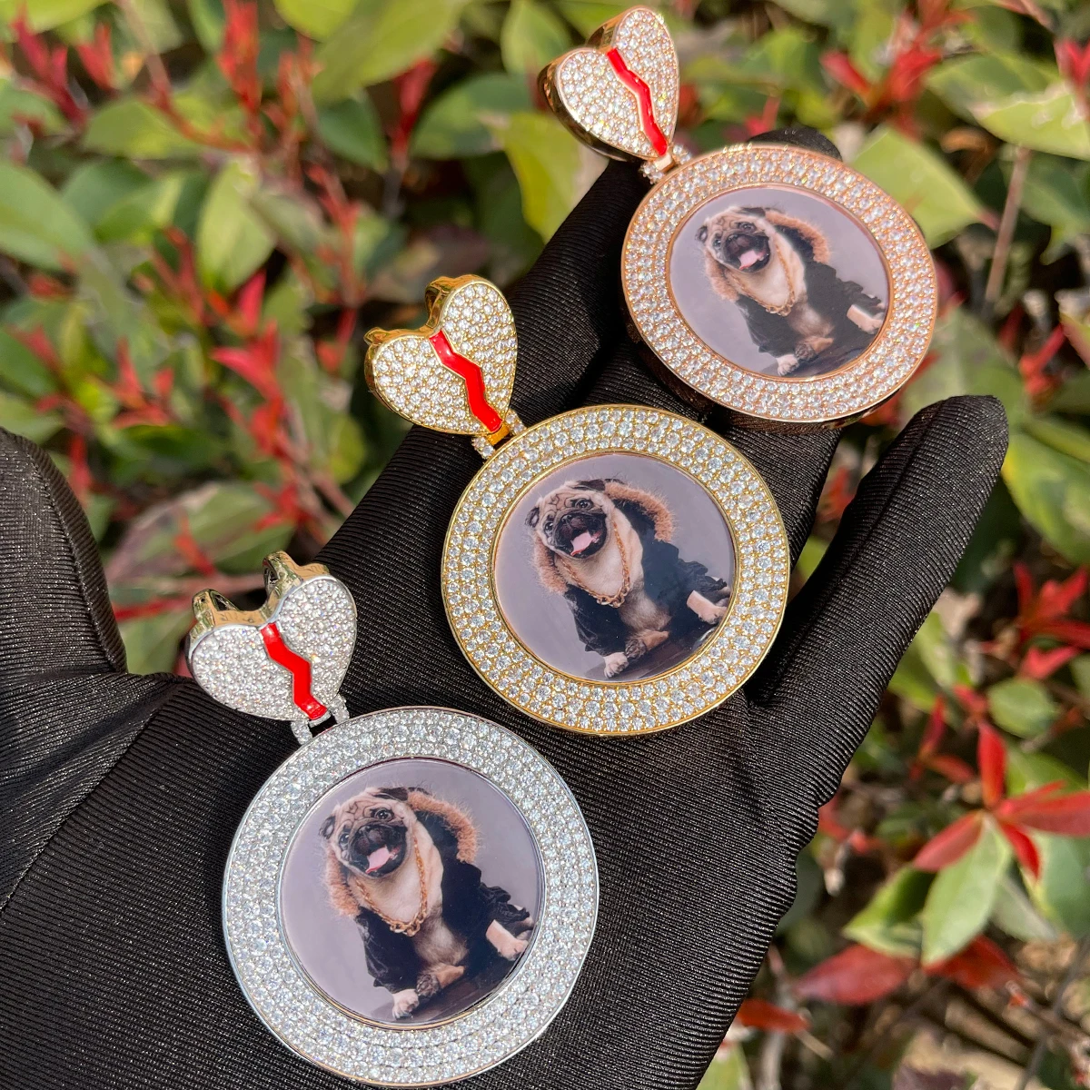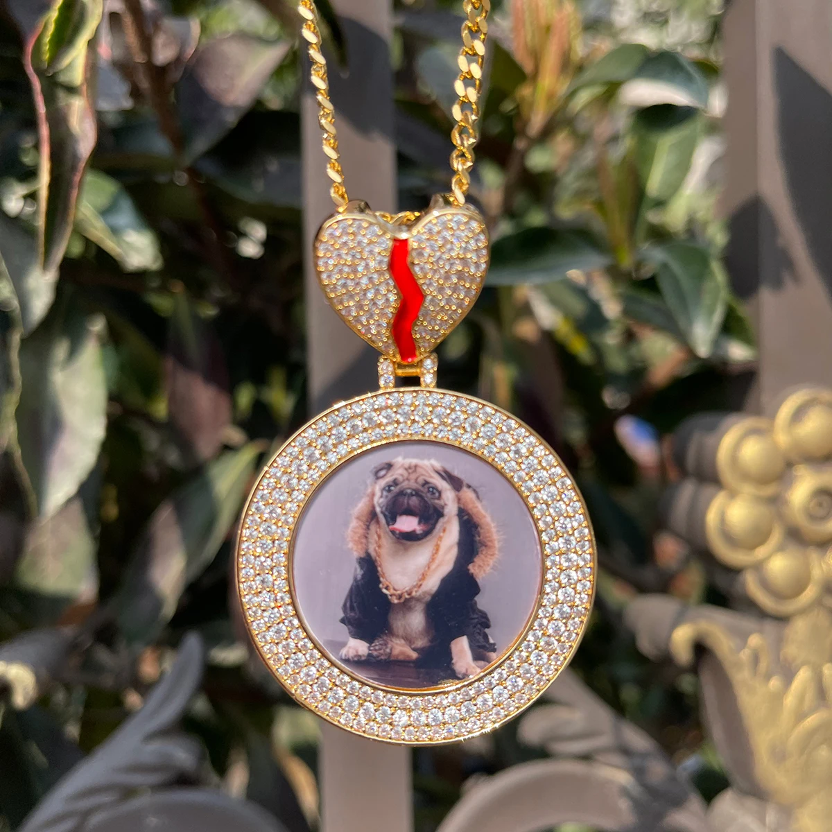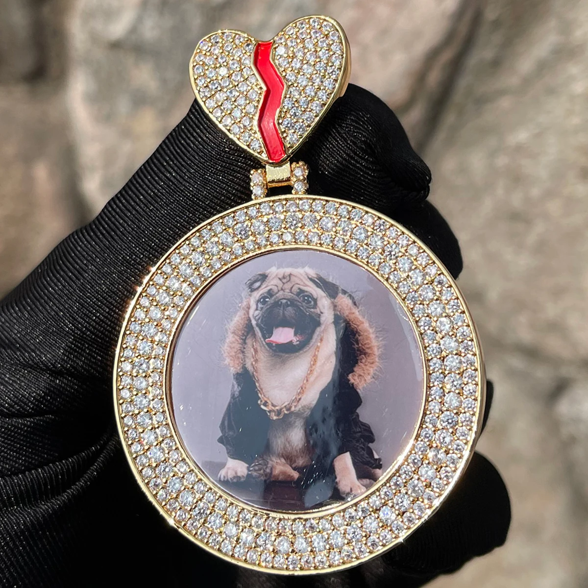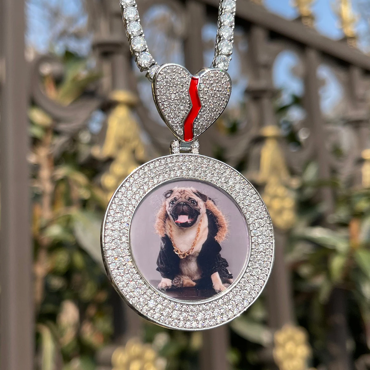 Bubble Letter Custom Photo Necklace for Women Personalized Picture Pendant Broken Heart Bail Hip Hop Jewelry