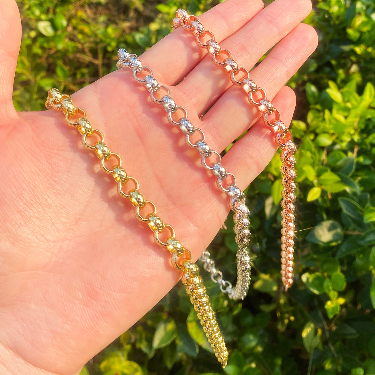 Bubble Letter Diamond Cut Belcher Ring Link Chain for Men Necklace Choker Real Gold Plated Copper Hip Hop Jewelry