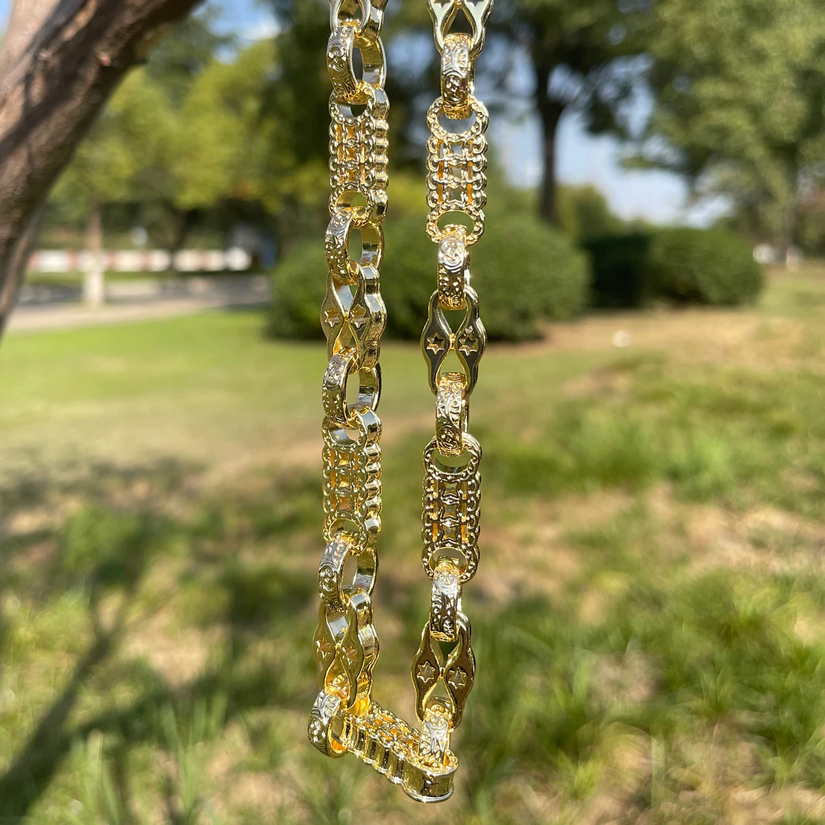 Bubble Letter Gold Color Men's Necklace Choker Plated Copper Cuban Link Fashion Hip Hop Punk Jewelry Rock Street