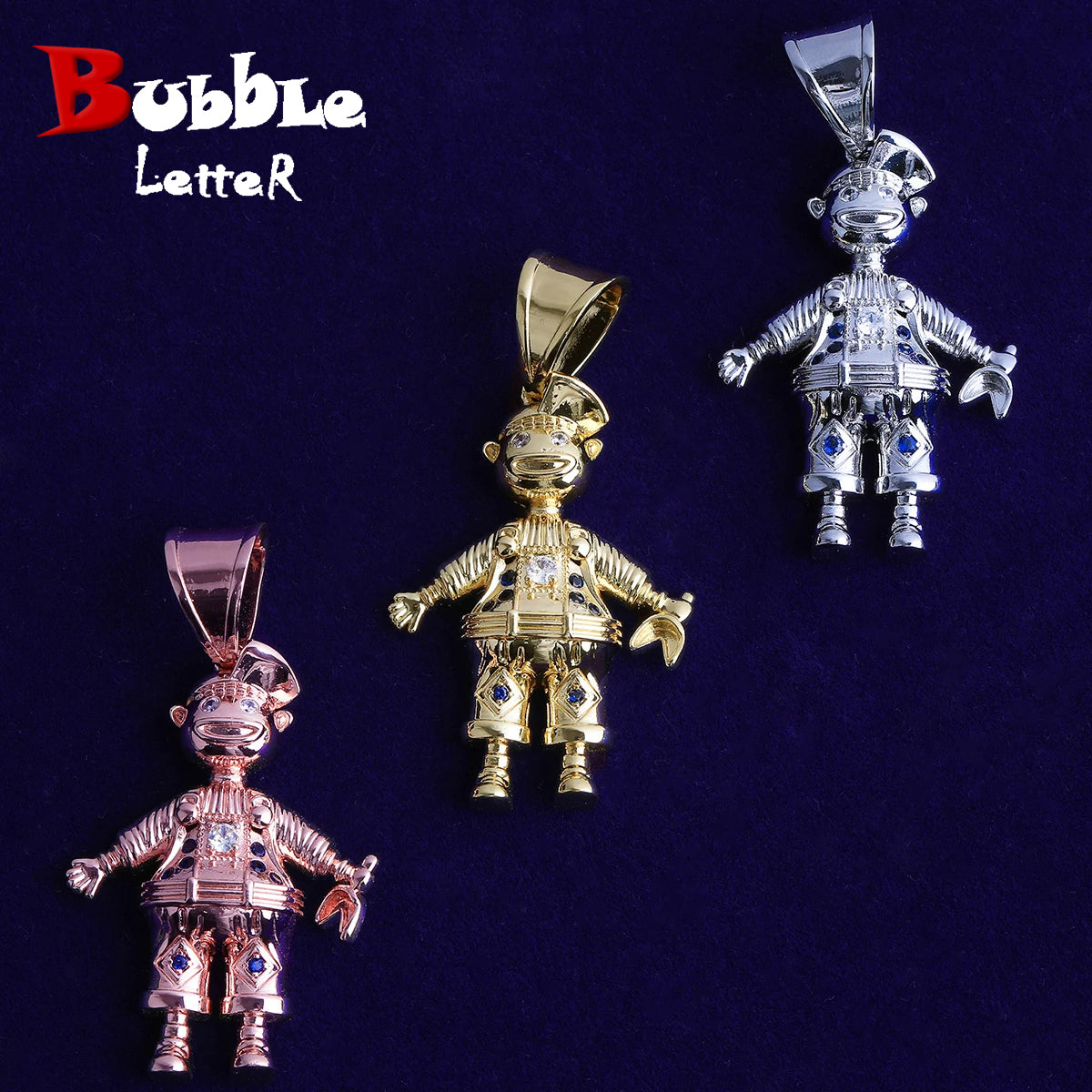 Bubble Letter Iced Out 3D Clown Necklace Pendant for Men Real Gold Plated Cubic Zirconia Hip Hop Jewelry
