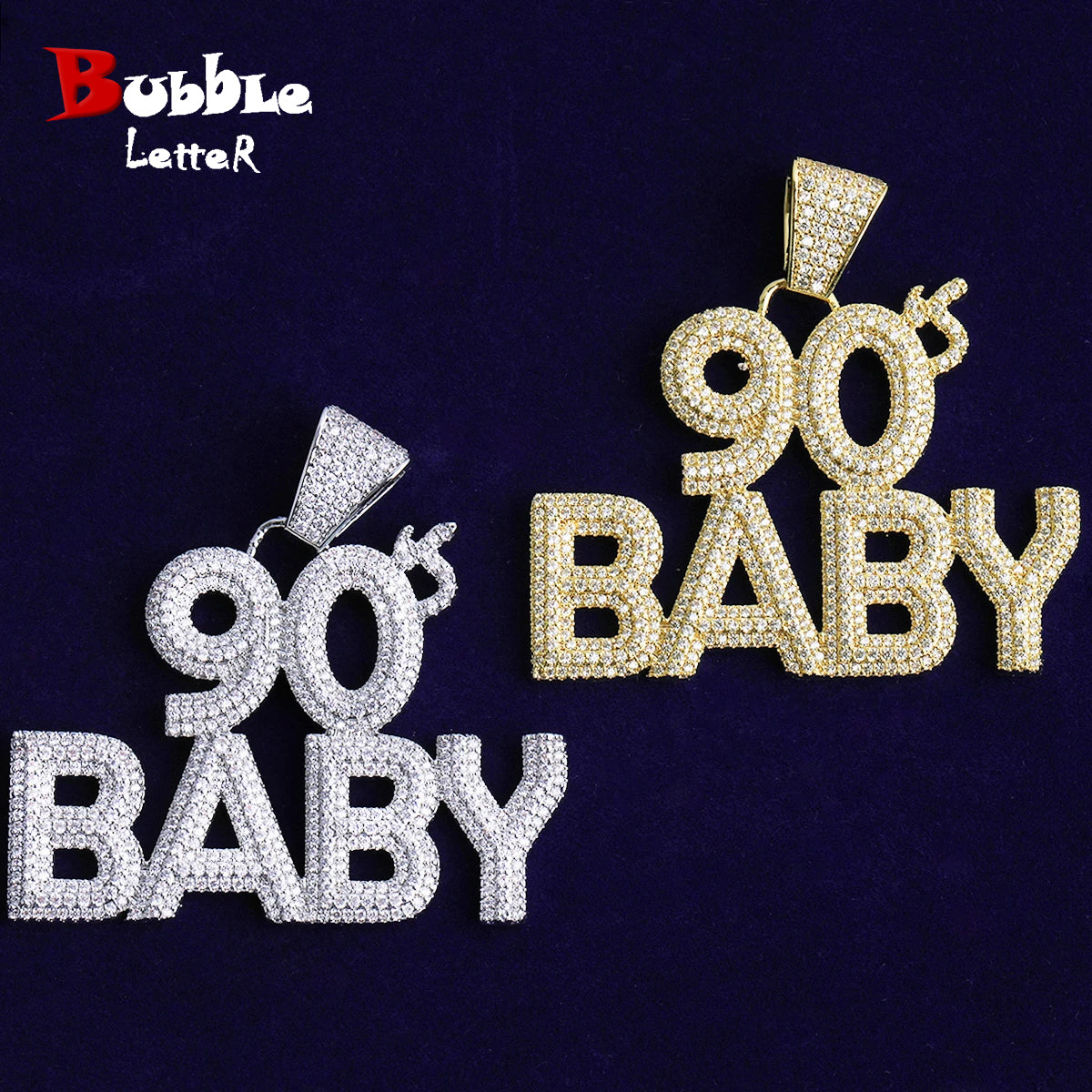 Bubble Letter Iced Out 90s Baby Necklace Pendant for Men Real Gold Plated Hip Hop Jewelry