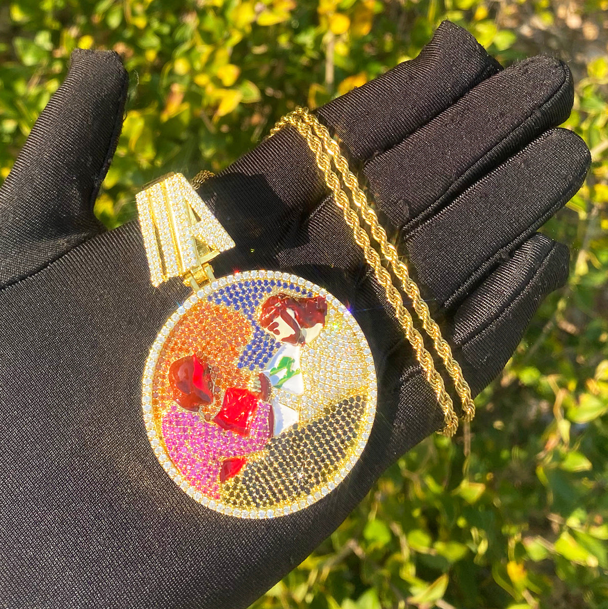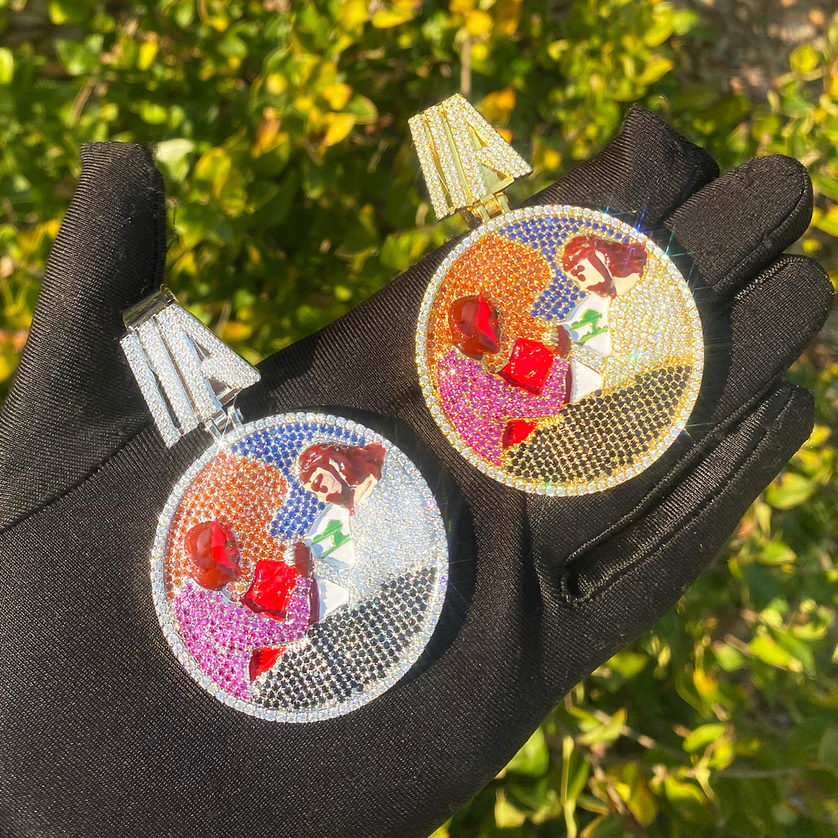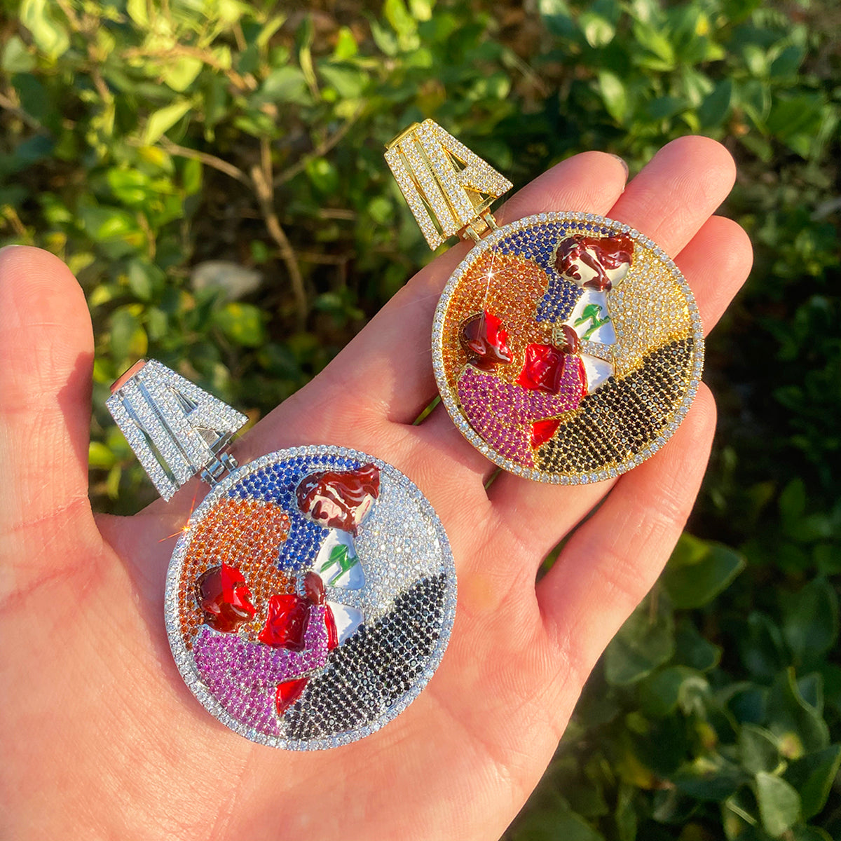 Bubble Letter Iced Out Arm Wrestling Circle Necklace Pendant for Men 5A Cubic Zirconia Hip Hop Jewelry