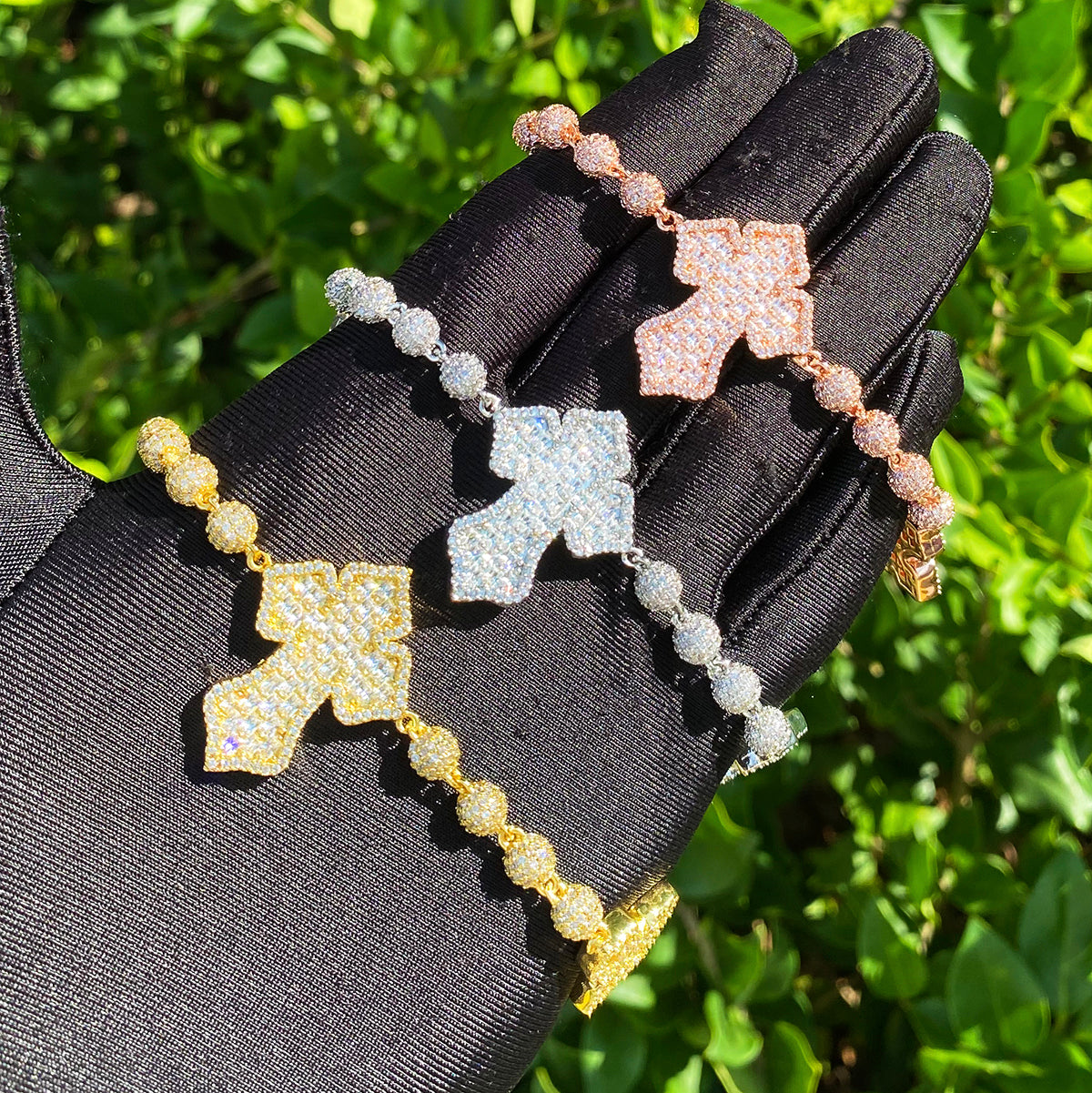 Bubble Letter Iced Out Beads Cross Bracelet for Men 5A Cubic Zirconia Hip Hop Jewelry