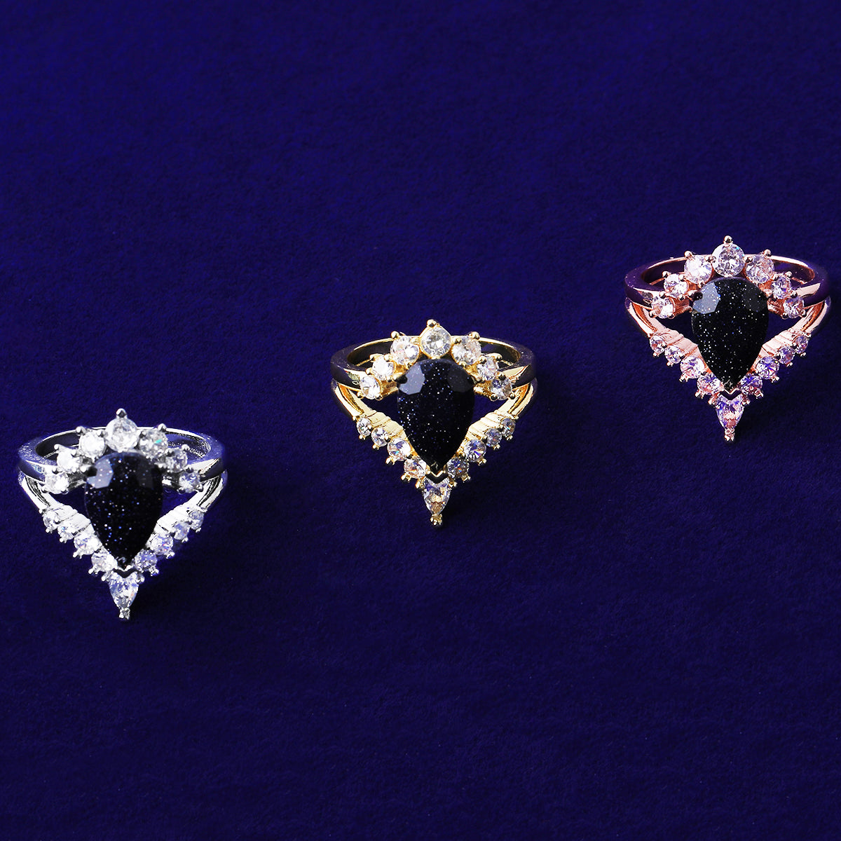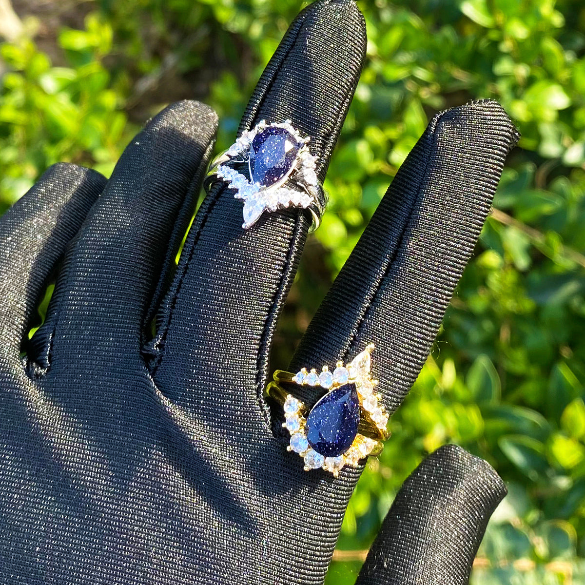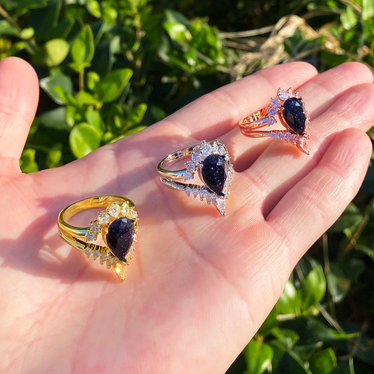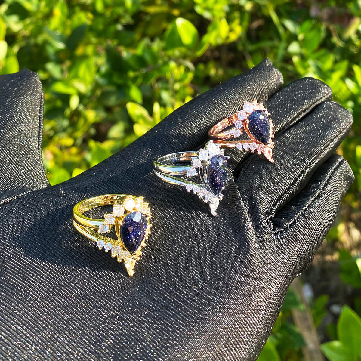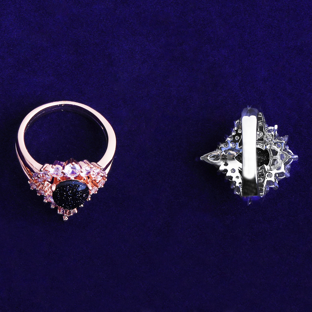 Bubble Letter Iced Out Black Stone Ring for Women Real Gold Plated Hip Hop Jewelry