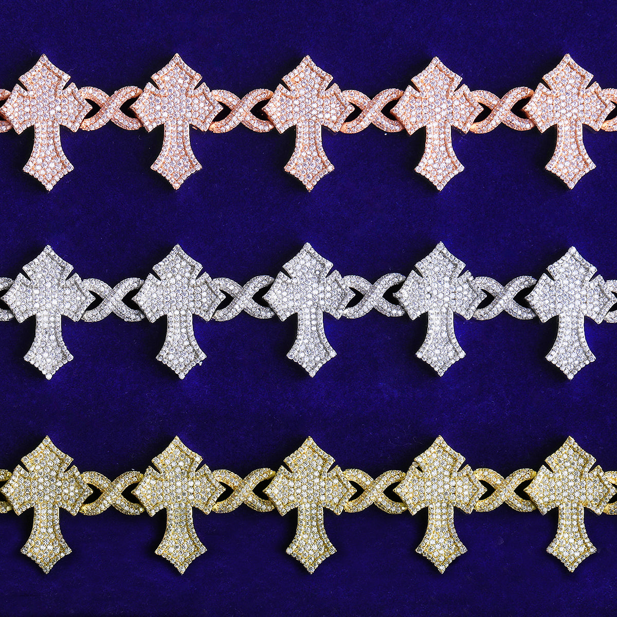 Bubble Letter Iced Out Cross Infinity Link Bracelet for Men 5A Cubic Zirconia Gold Plated Hip Hop Jewelry