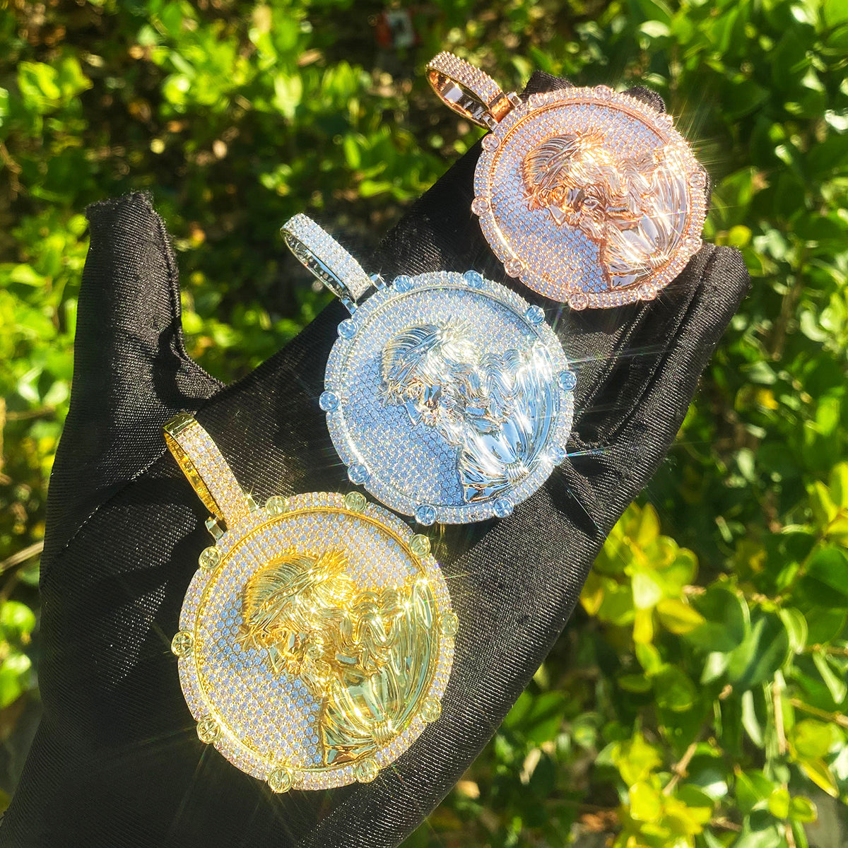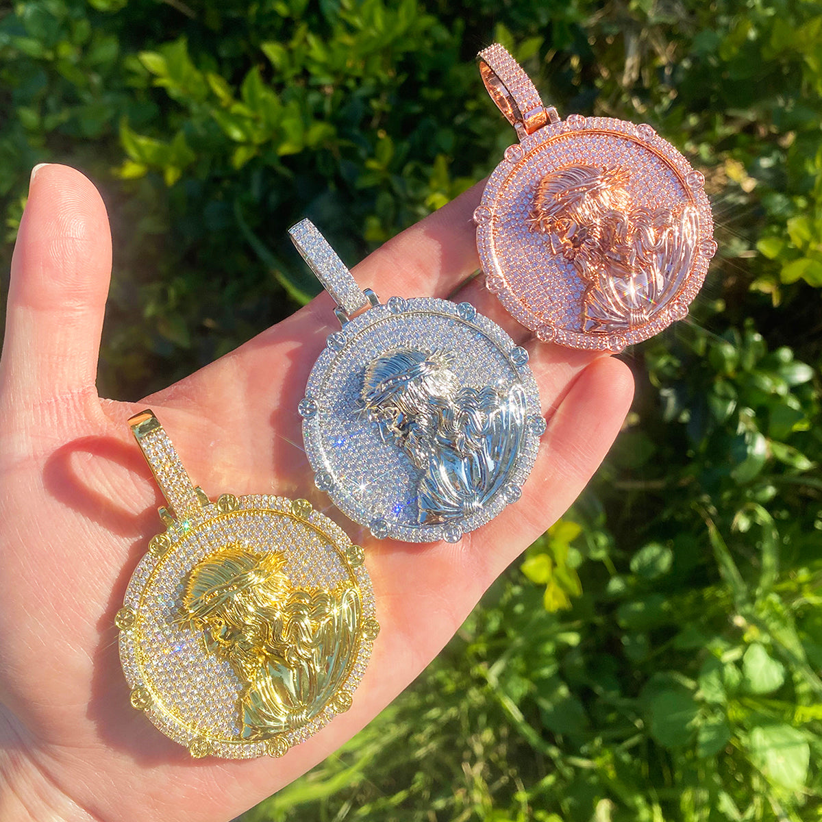 Bubble Letter Iced Out Disc Jesus Necklace Pendant for Men Real Gold Plated Hip Hop Jewelry