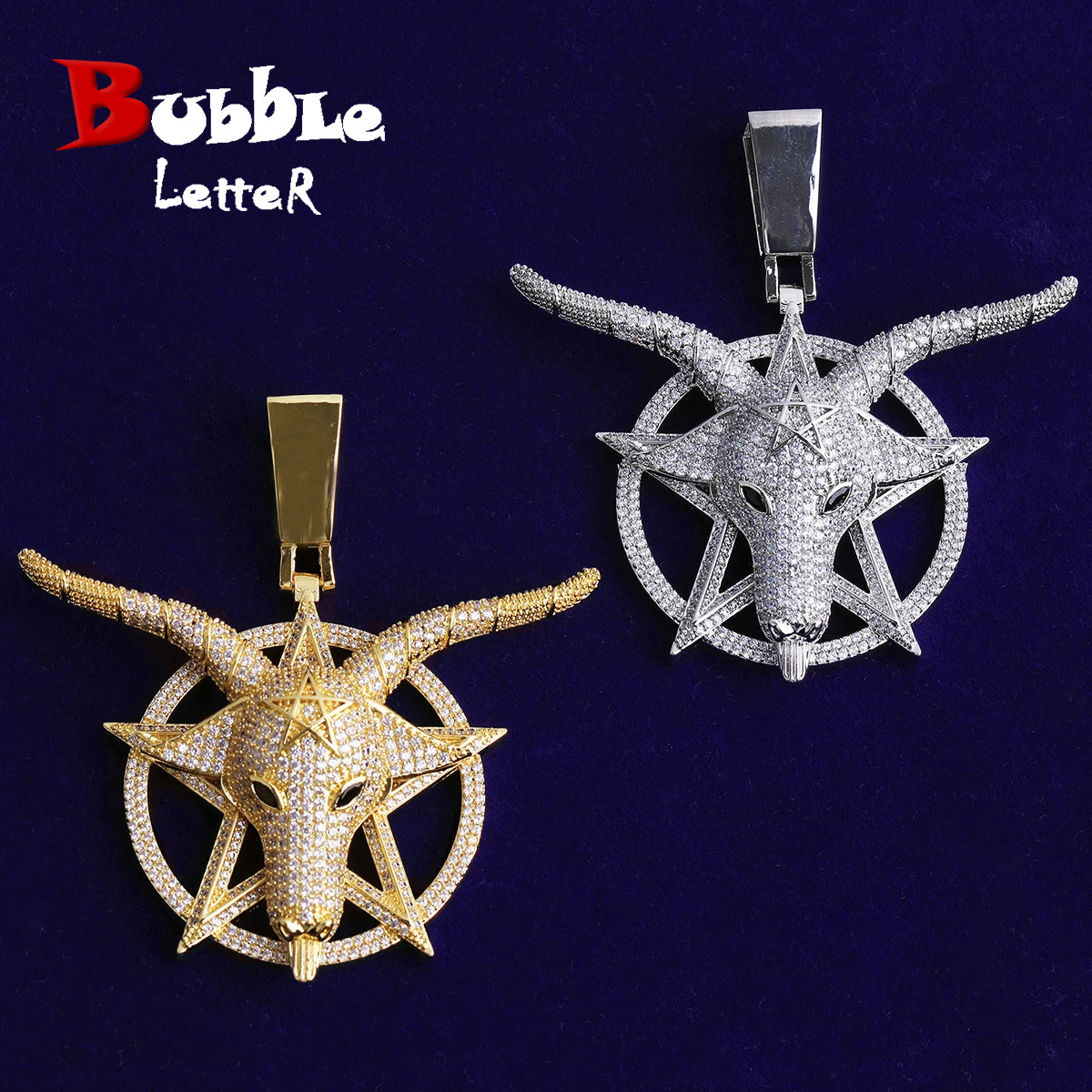 Bubble Letter Iced Out Goat Star Circle Necklace Pendant for Men Real Gold Plated Cubic Zirconia Hip Hop Jewelry
