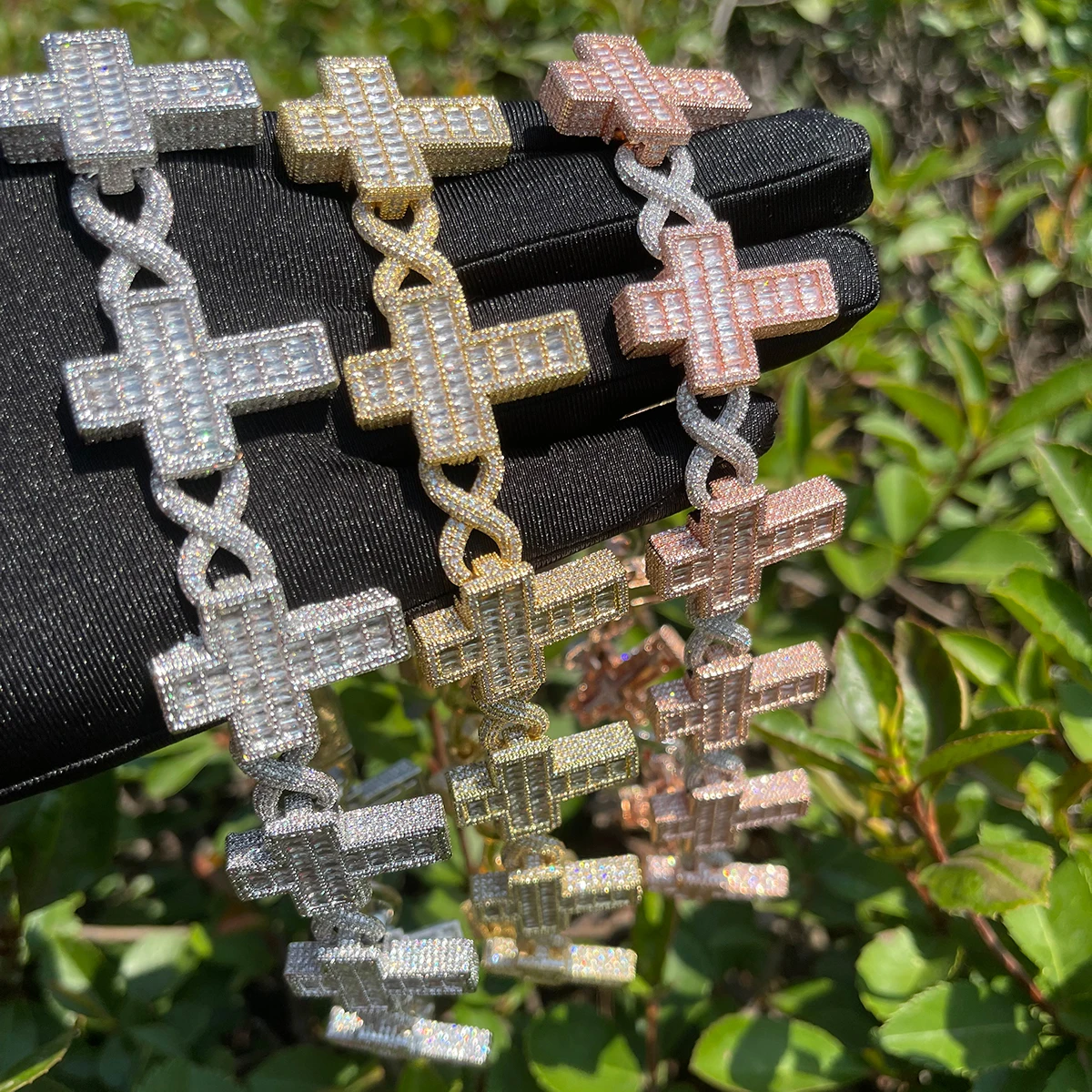 Bubble Letter Iced Out Infinity Link Chain for Men Baguette Cross Necklace Choker Hip Hop Jewelry