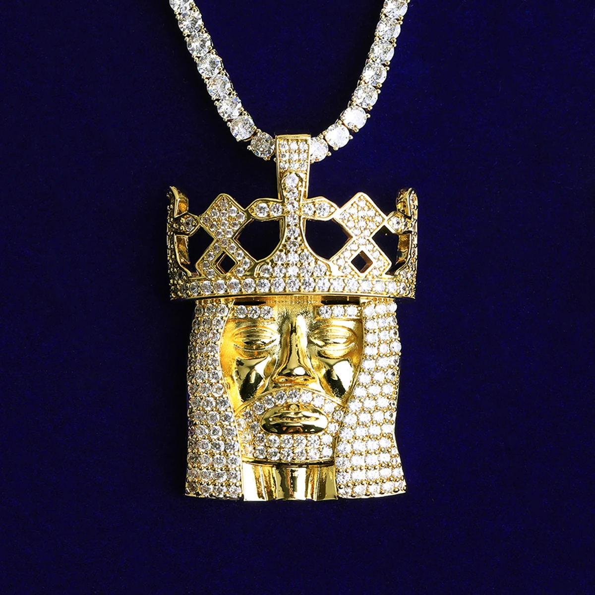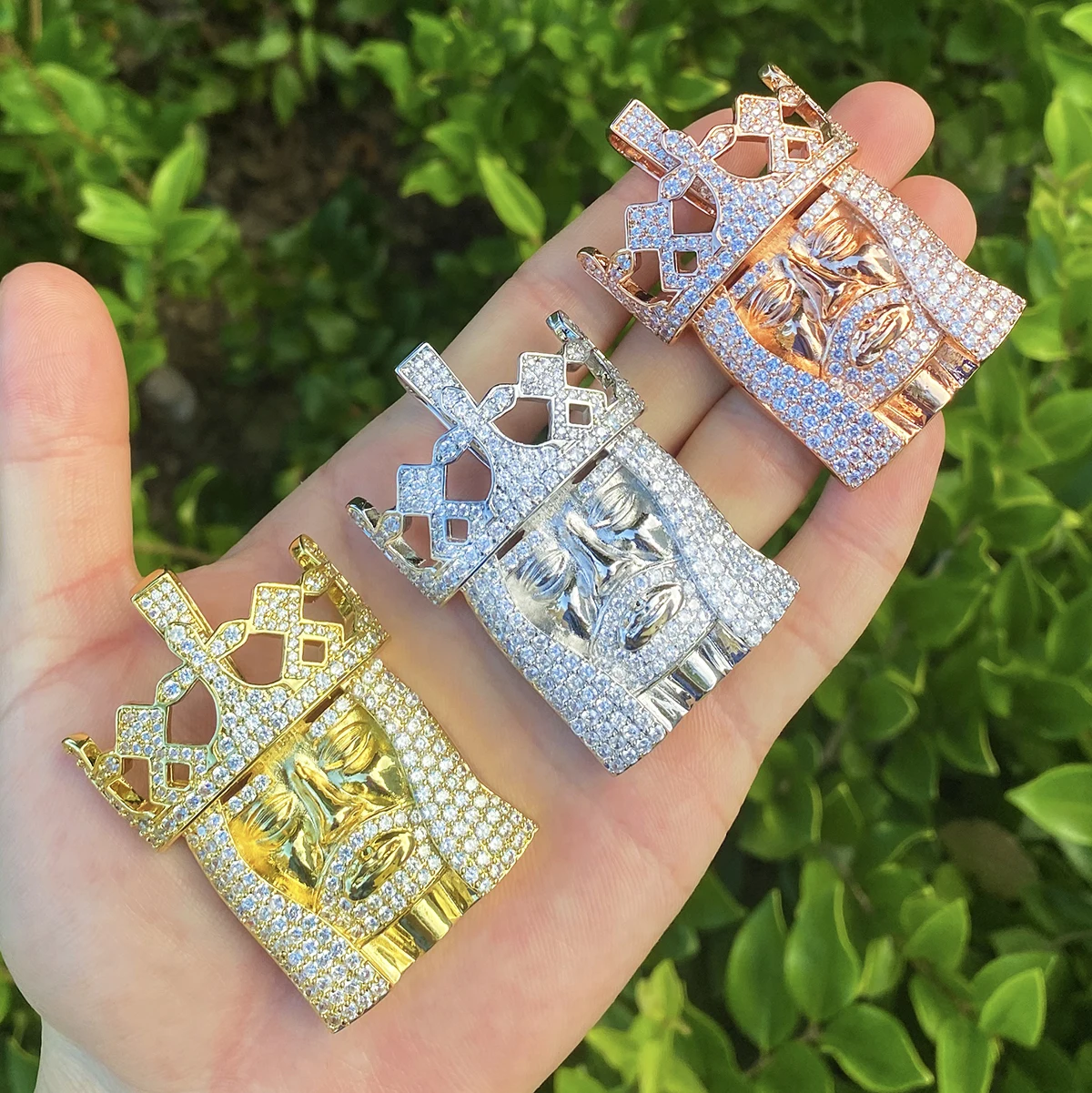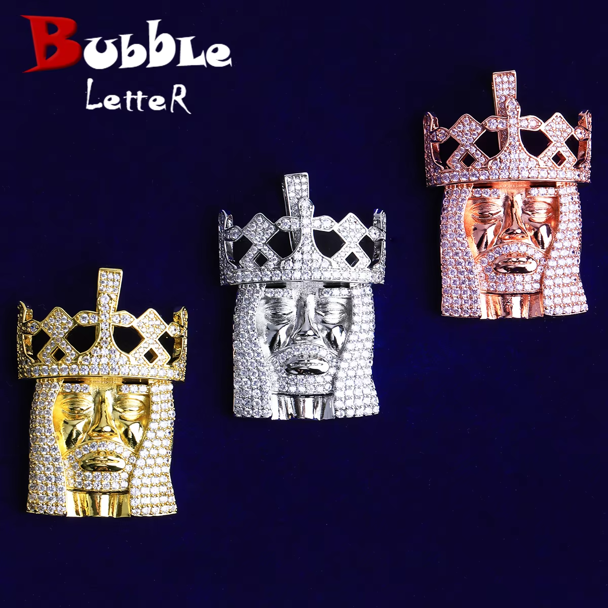 Bubble Letter Iced Out Jesus Cross Edge Necklace Pendant for Men Prong Setting 5A Cubic Zirconia Hip Hop Jewelry