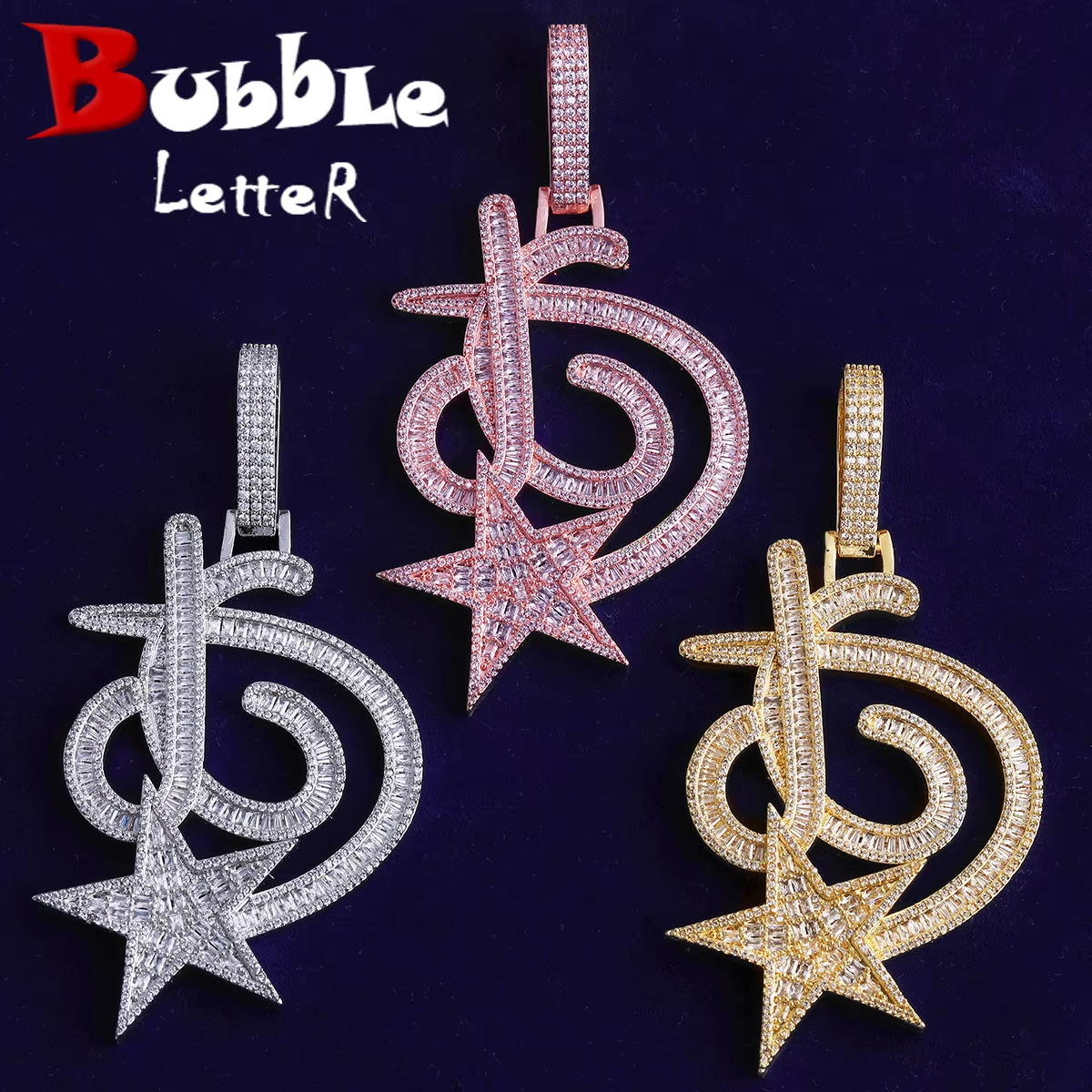 Bubble Letter Iced Out JG Star Necklace Pendant for Men Real Gold Plated Cubic Zirconia Hip Hop Jewelry