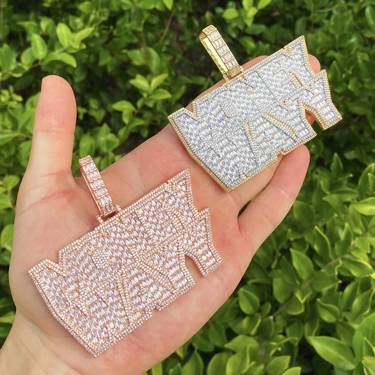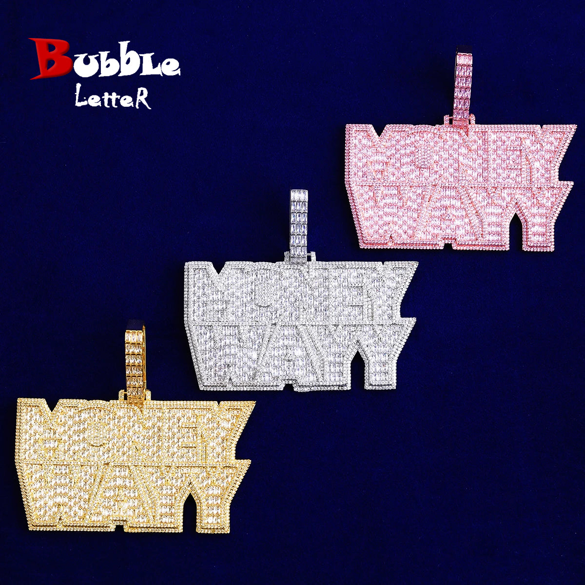 Bubble Letter Iced Out Money Wayy Necklace Pendant for Men Prong Setting Real Gold Plated Hip Hop Jewelry