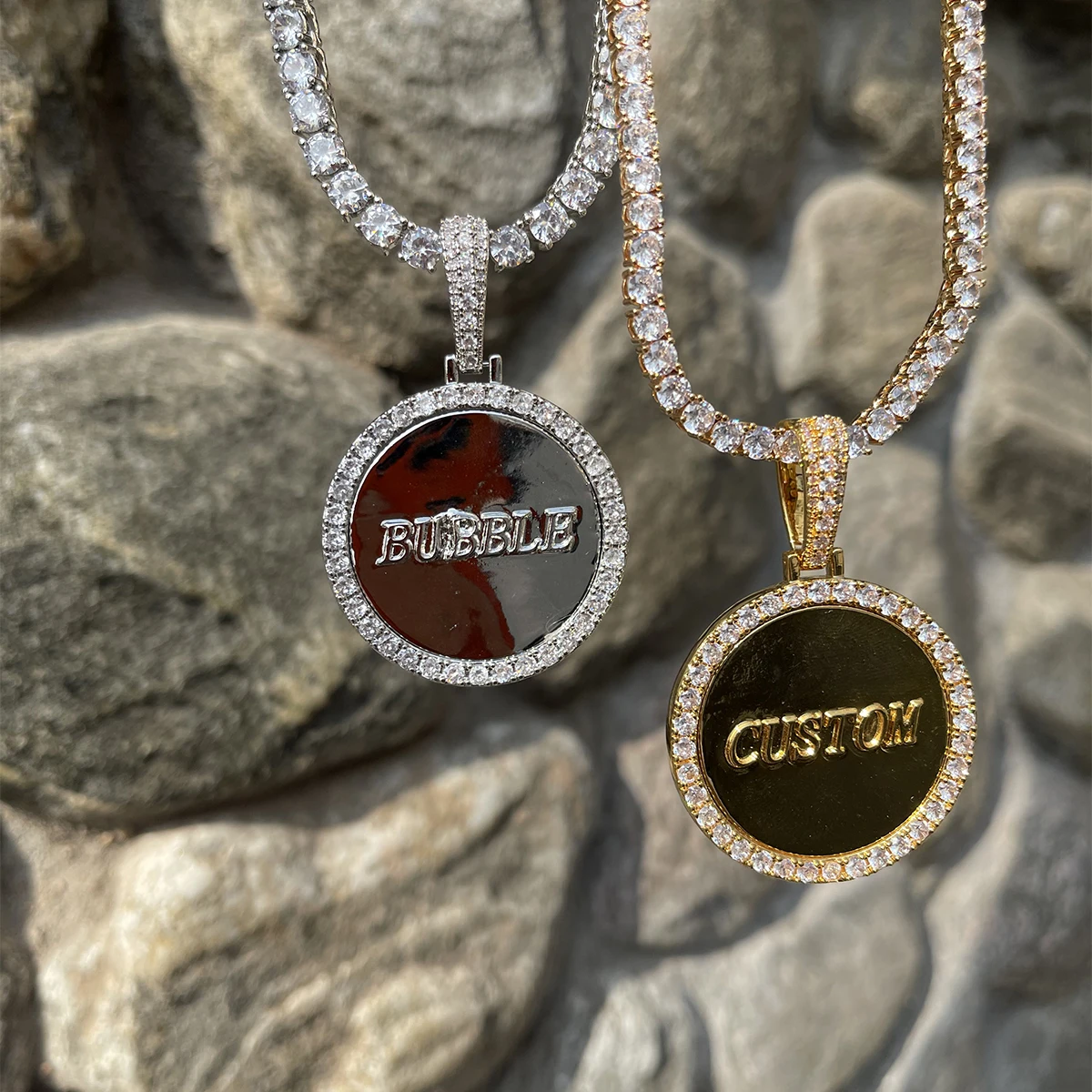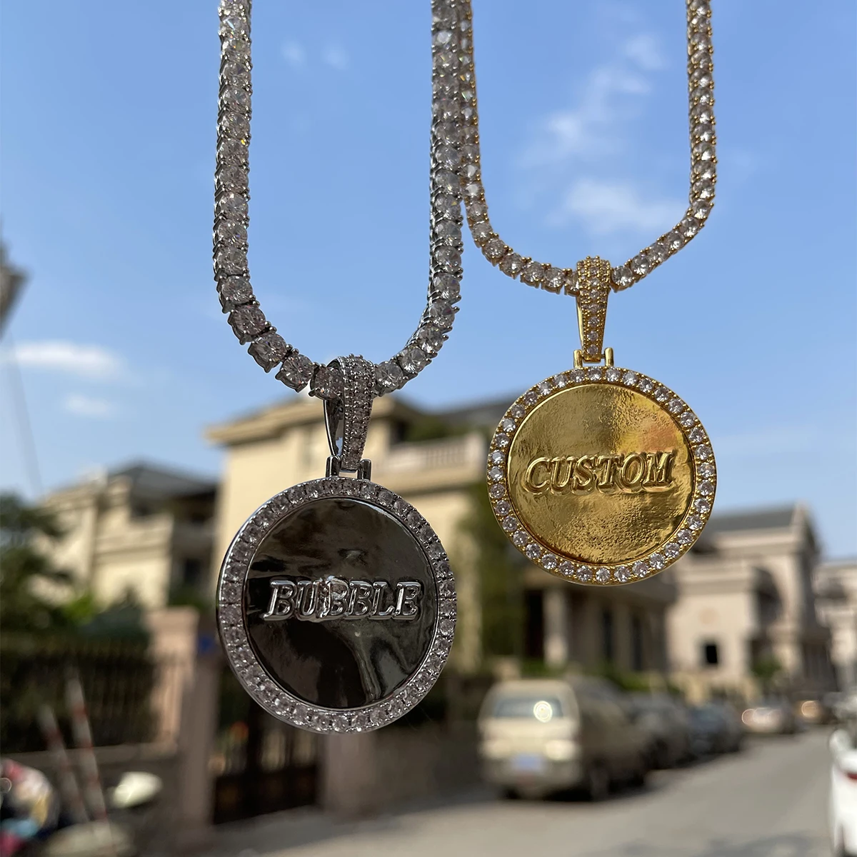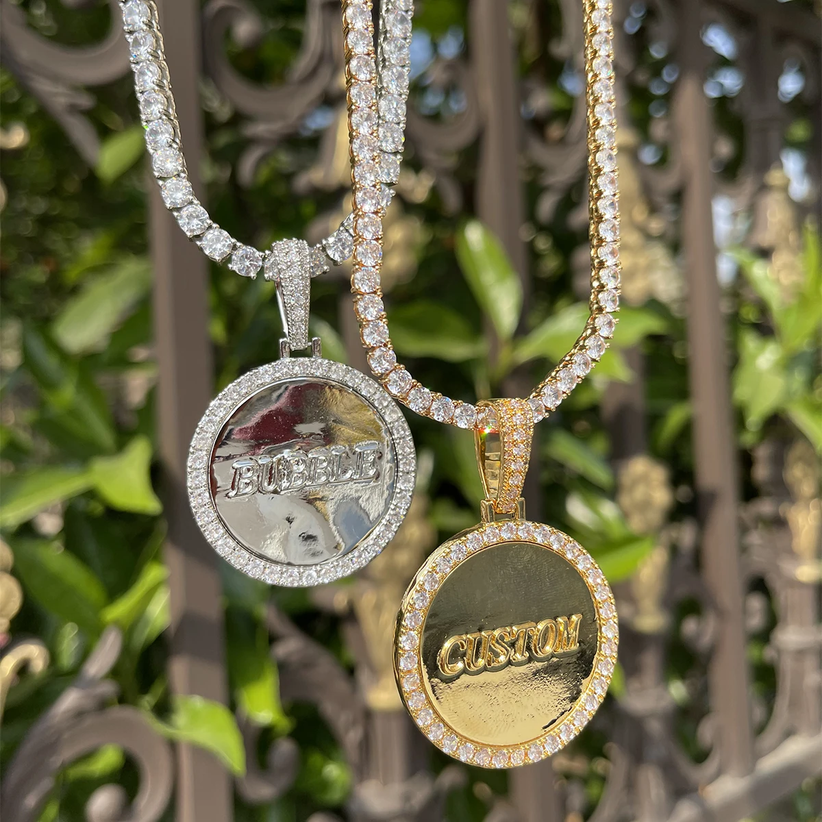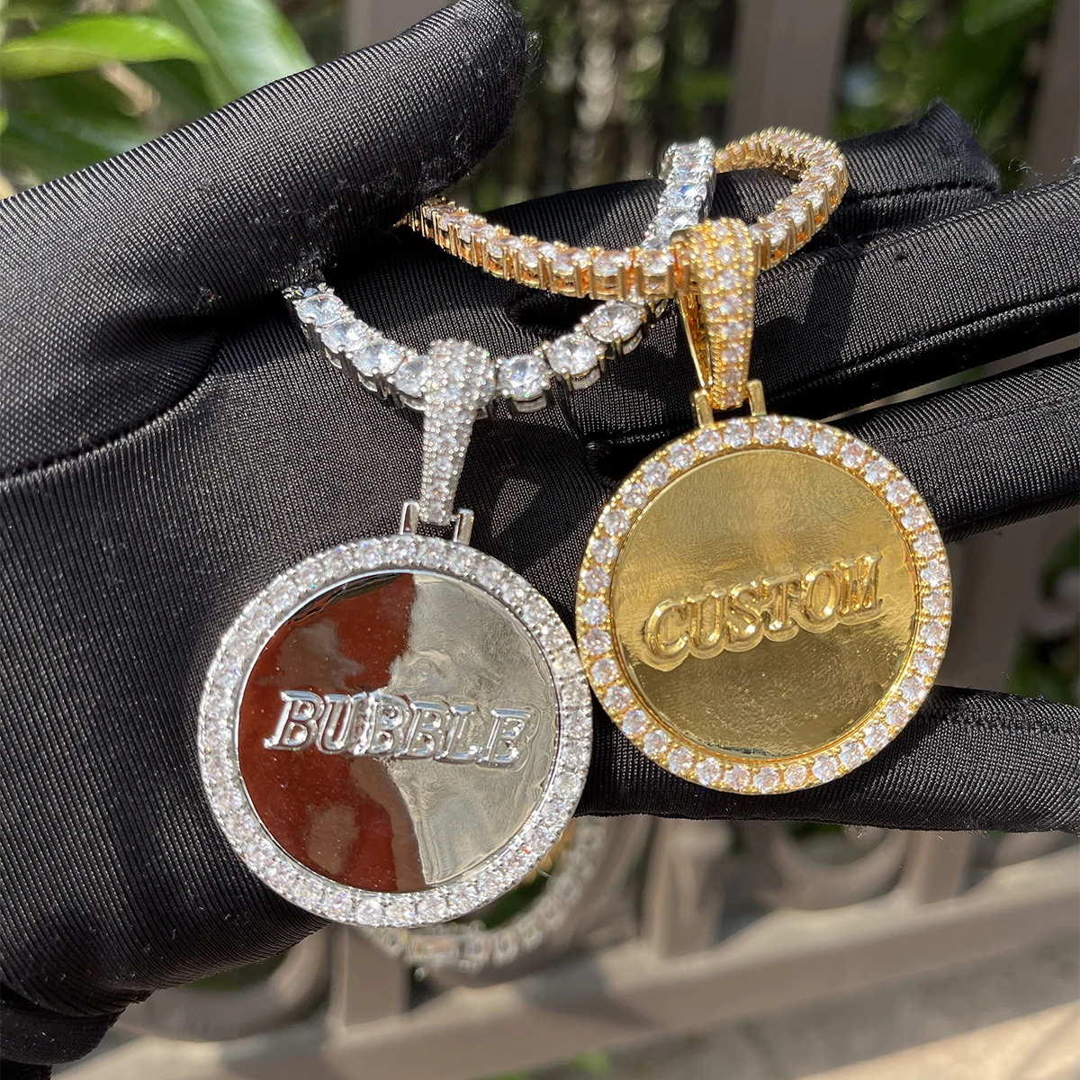 Bubble Letter Iced Out Pendant Custom Name Necklace Solid Back Hip Hop Jewelry 2022 Trend Best Selling Drop Shipping Items