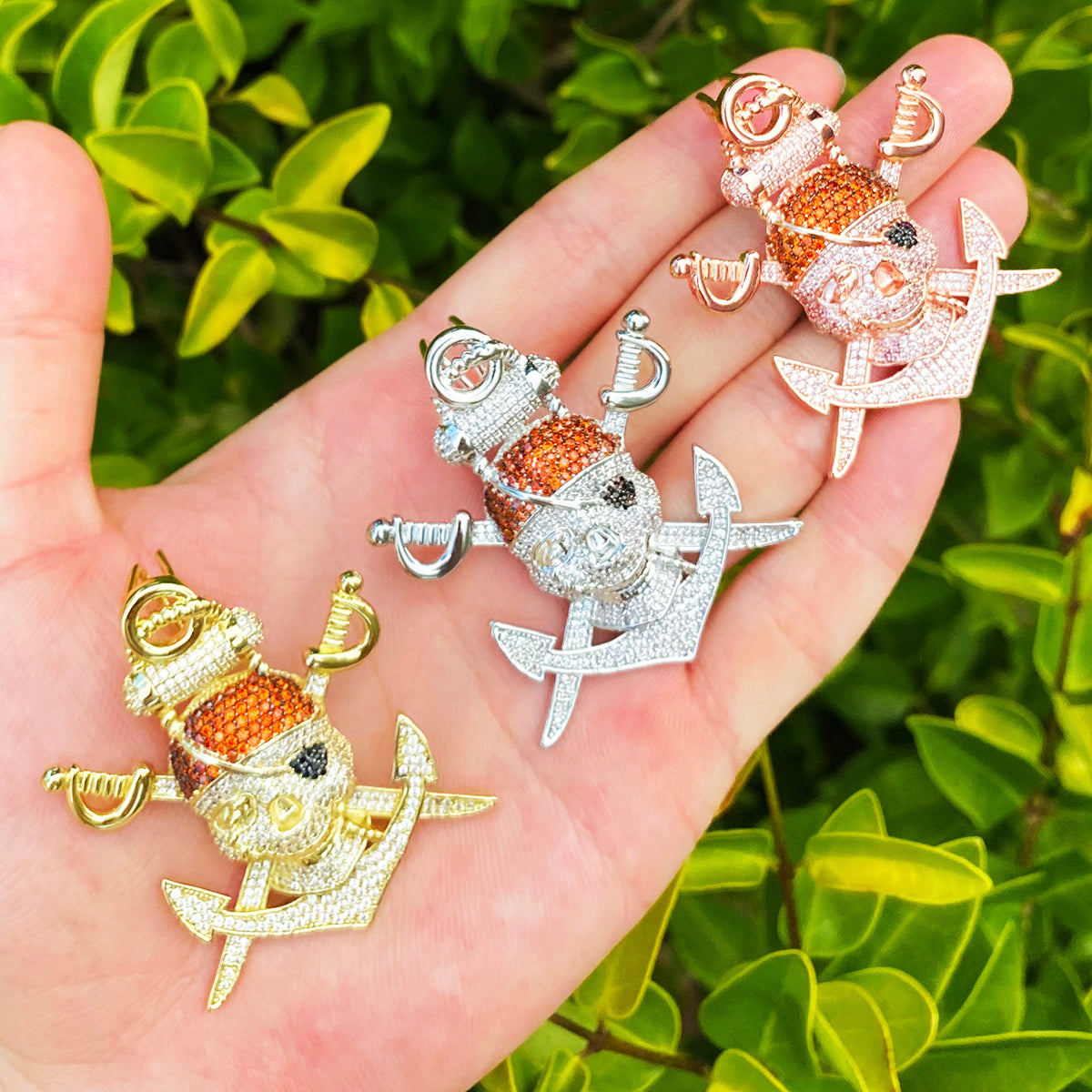 Bubble Letter Iced Out Pirate Anchor Necklace Pendant for Men Prong Setting 5A Cubic Zirconia Hip Hop Jewelry