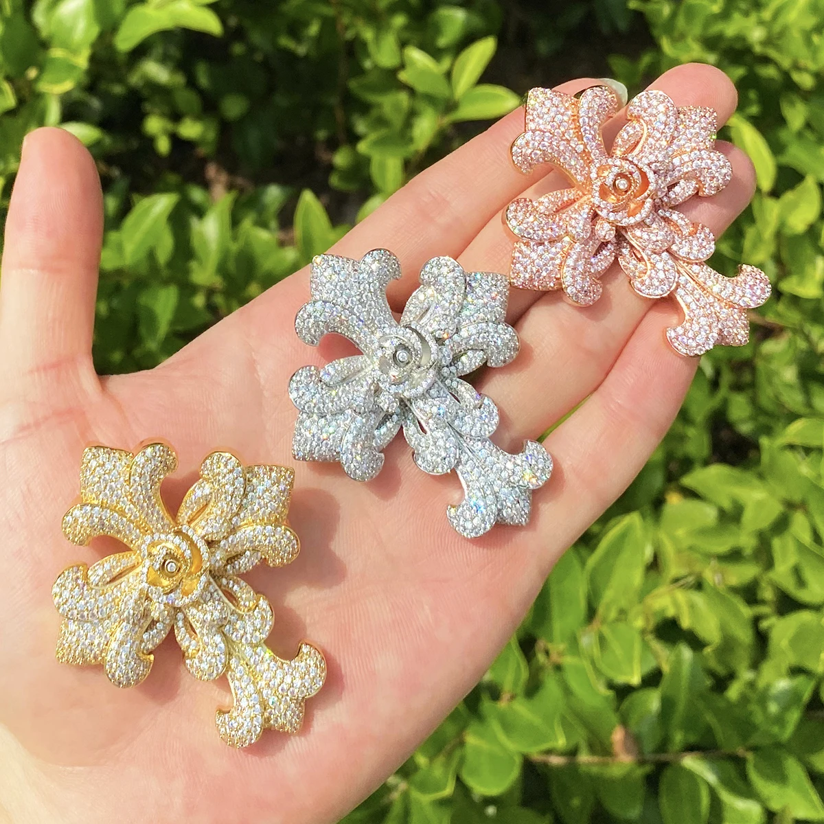 Bubble Letter Iced Out Rose Flower Cross Necklace Pendant for Men Prong Setting 5A Cubic Zirconia Hip Hop Jewelry